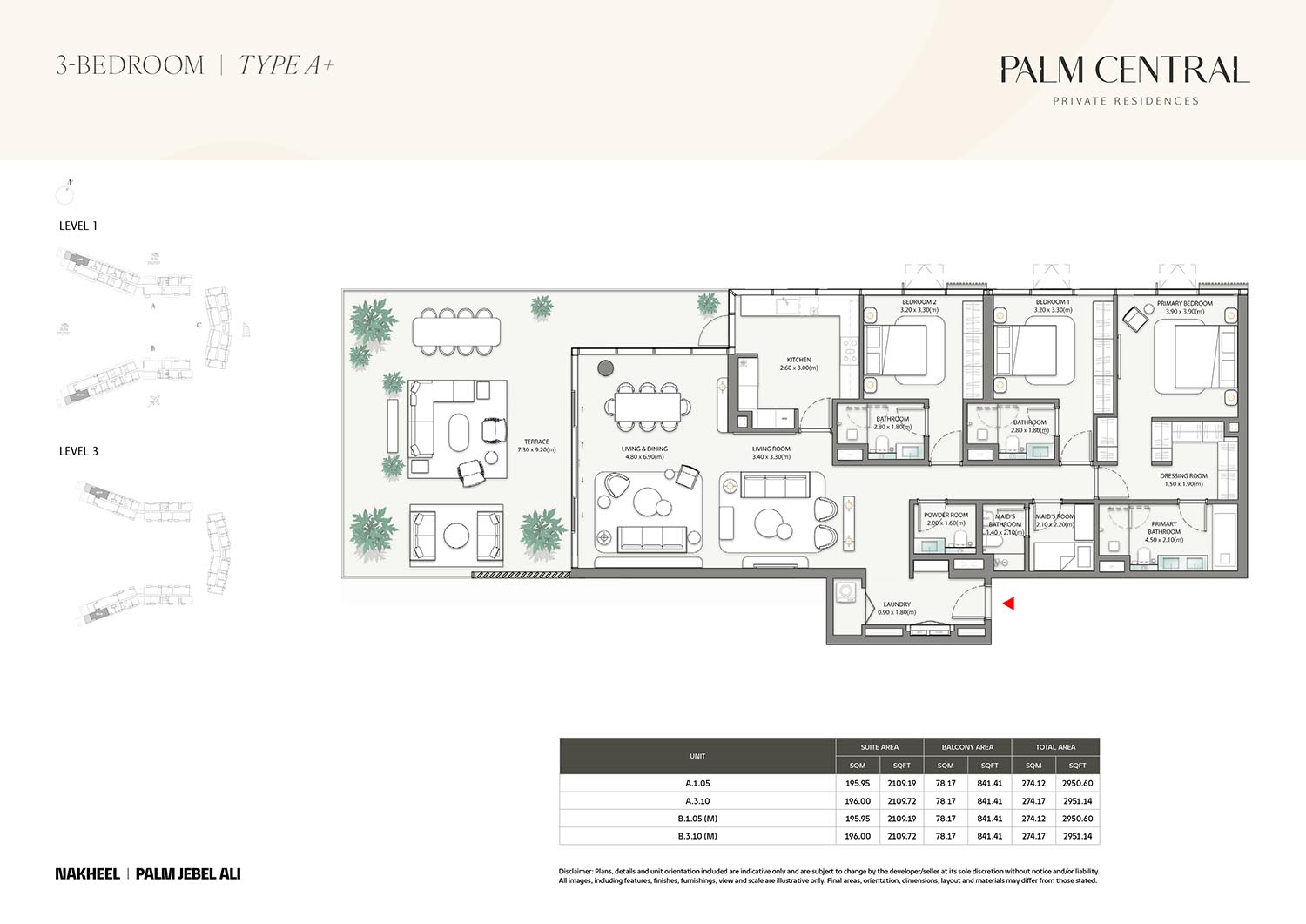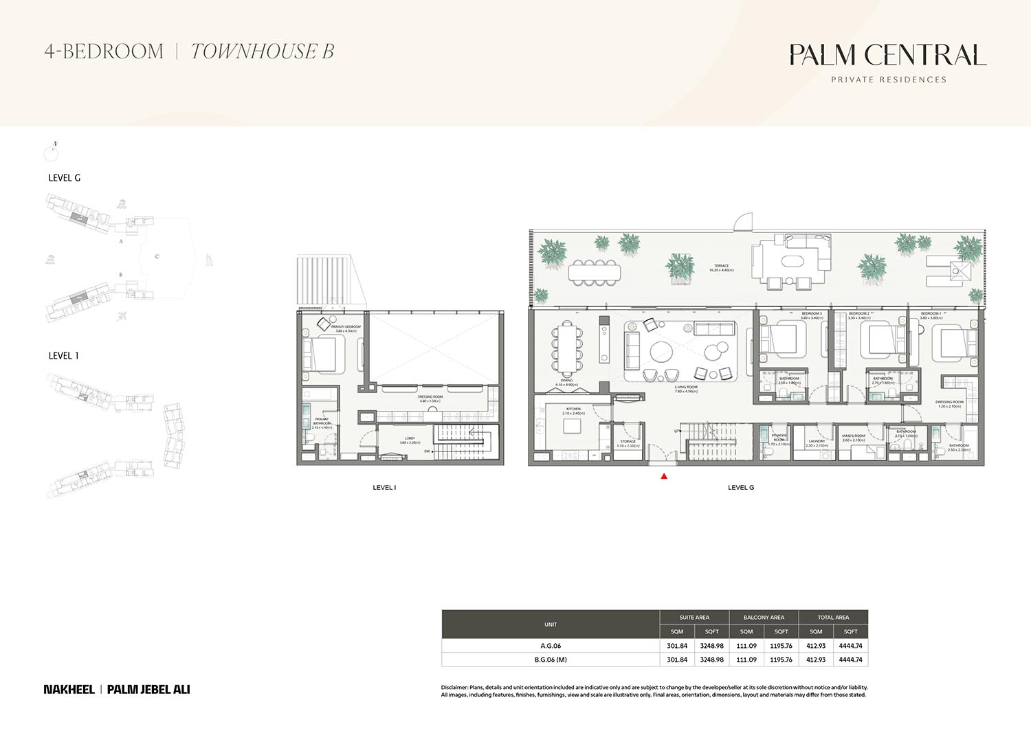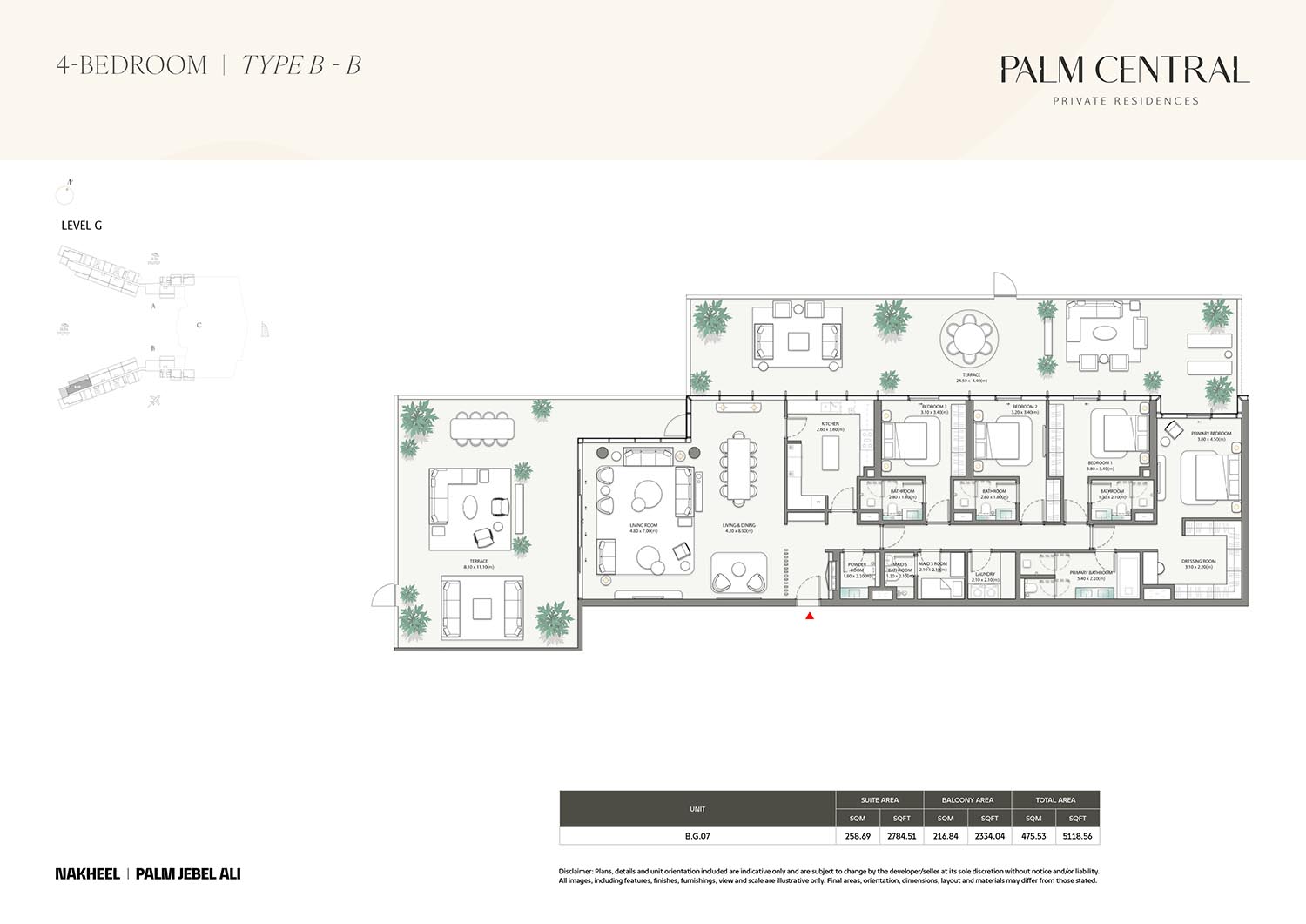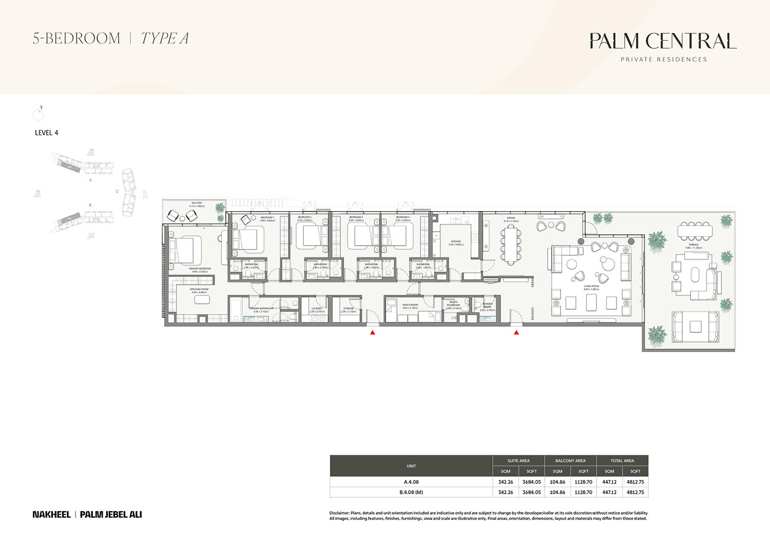 Palm Central Private Residences are selected with extensive floor plans of 1 to 5-bedroom apartments along with townhouses and penthouses at ease. The luxury apartments have open rooms with self-glazing balconies, and the larger units are enlarged to the terrace with the sea view. Townhouses have access to beaches and living spaces are double height and penthouses reinvent exclusivity with their own pools, terraces and spectacular views of the skyline. All the units are highlighted by the openness, light and informal indoor-outdoor living with sophisticated finishes, lots of storage area and personal garages that combine grace and utility to everyday living on the island.