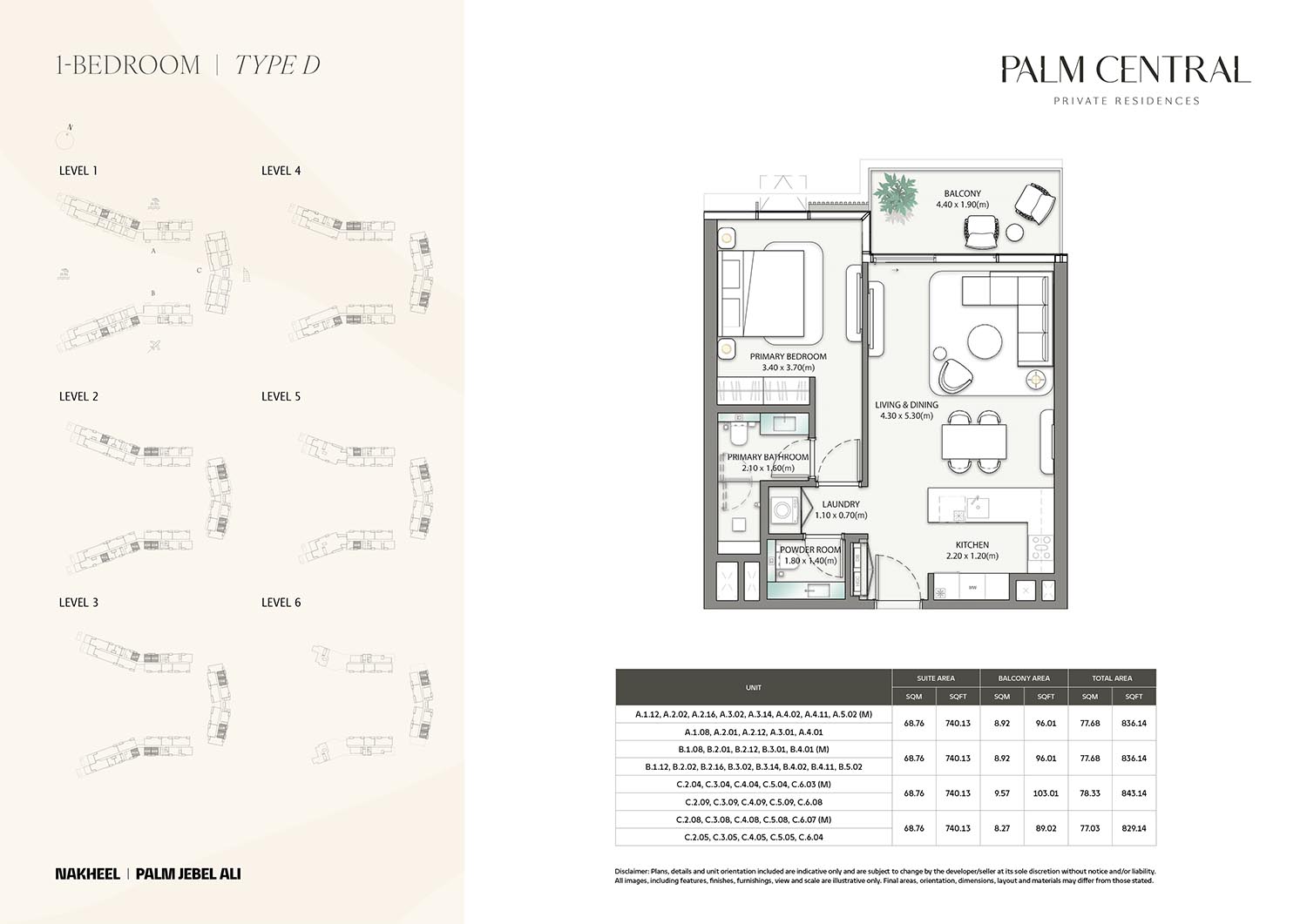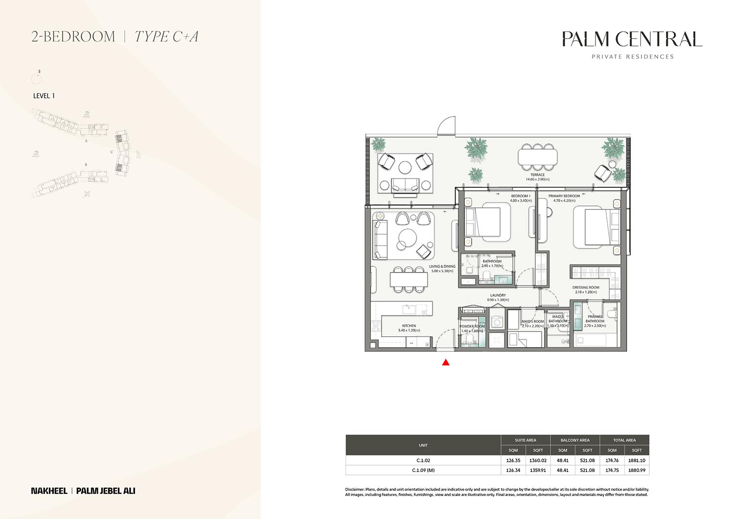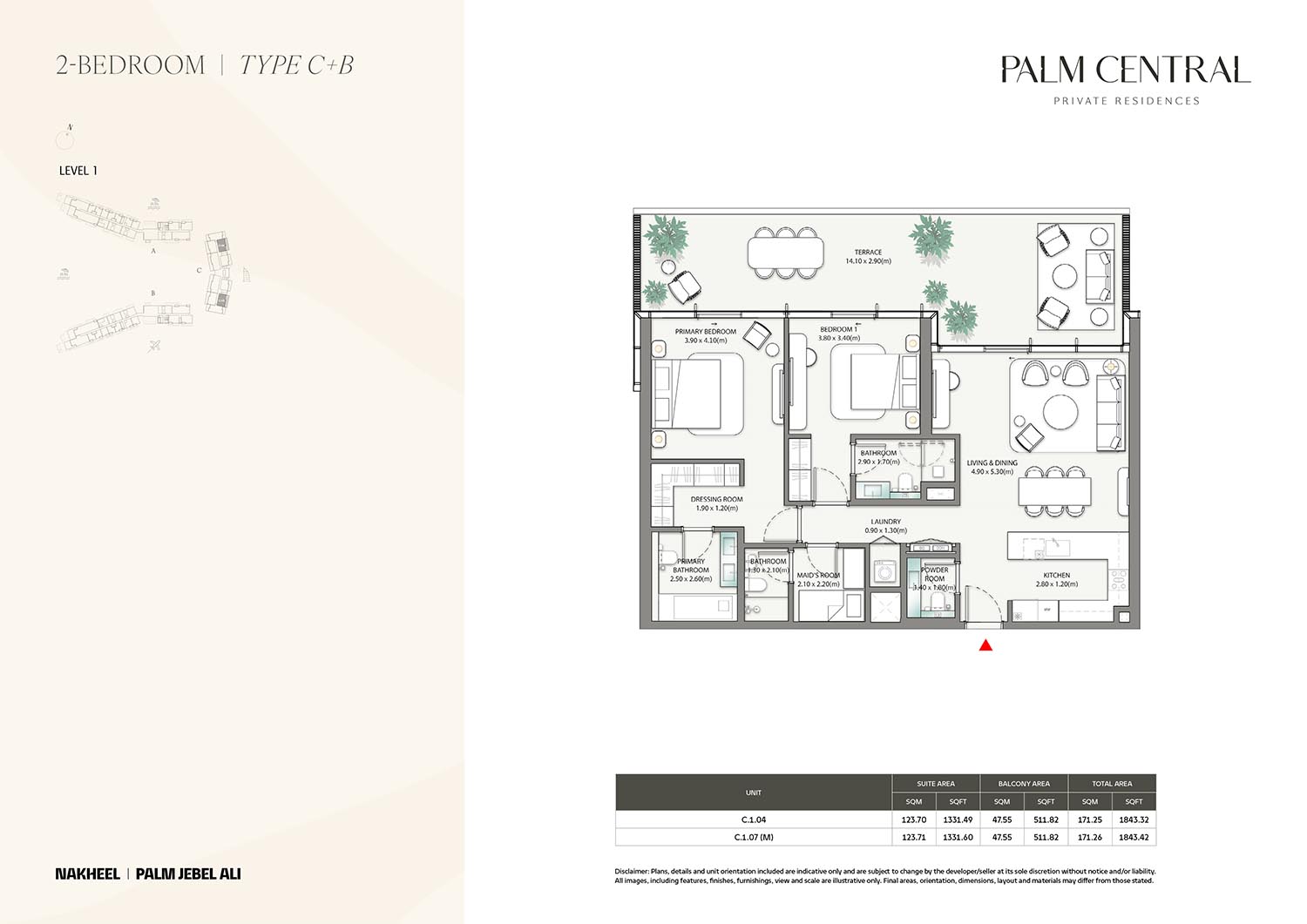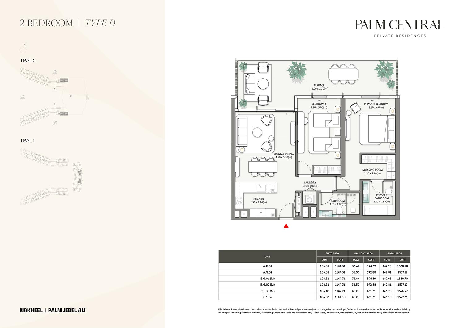 Palm Central Private Residences are selected with extensive floor plans of 1 to 5-bedroom apartments along with townhouses and penthouses at ease. The luxury apartments have open rooms with self-glazing balconies, and the larger units are enlarged to the terrace with the sea view. Townhouses have access to beaches and living spaces are double height and penthouses reinvent exclusivity with their own pools, terraces and spectacular views of the skyline. All the units are highlighted by the openness, light and informal indoor-outdoor living with sophisticated finishes, lots of storage area and personal garages that combine grace and utility to everyday living on the island.