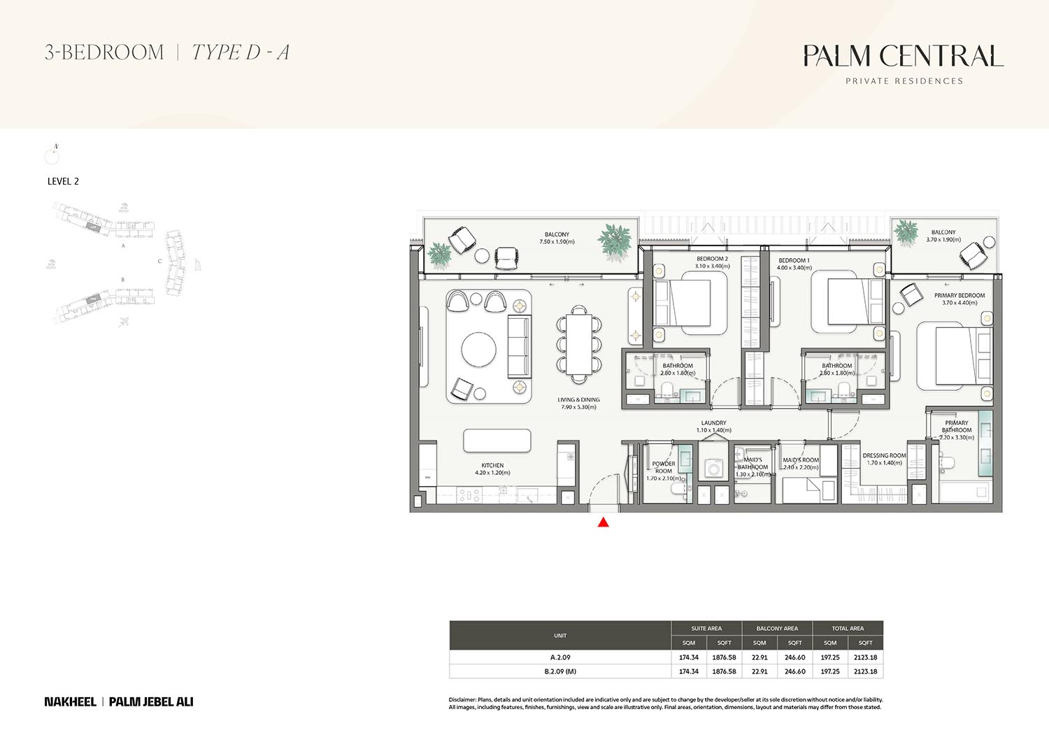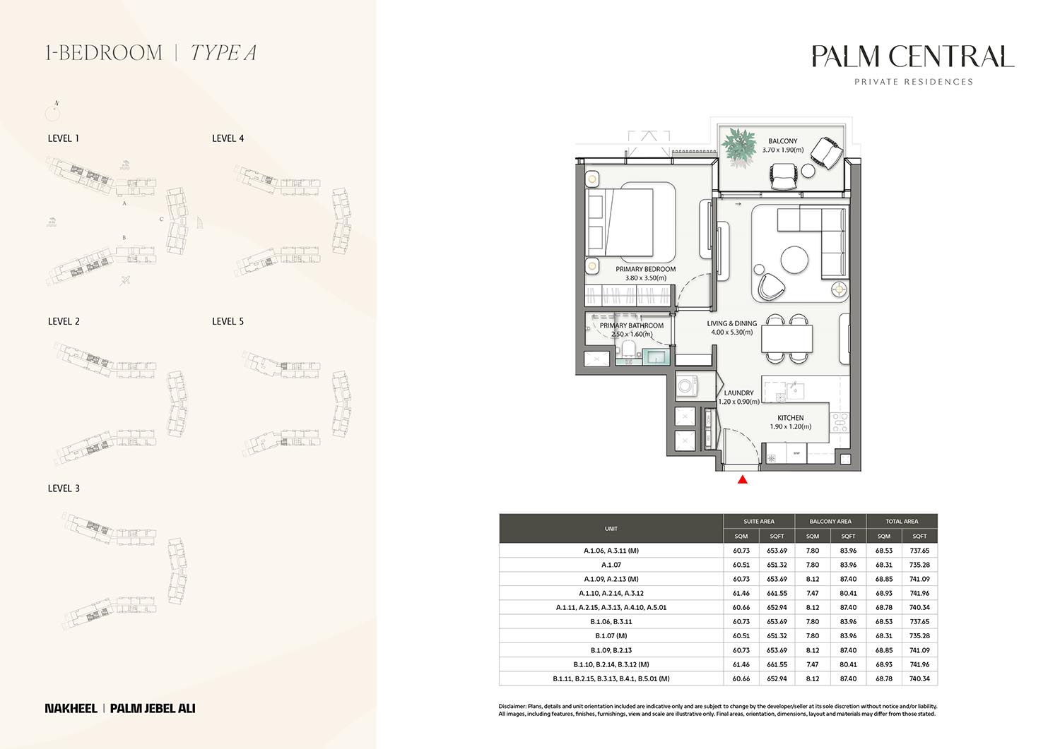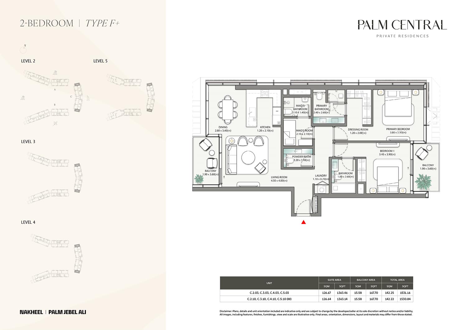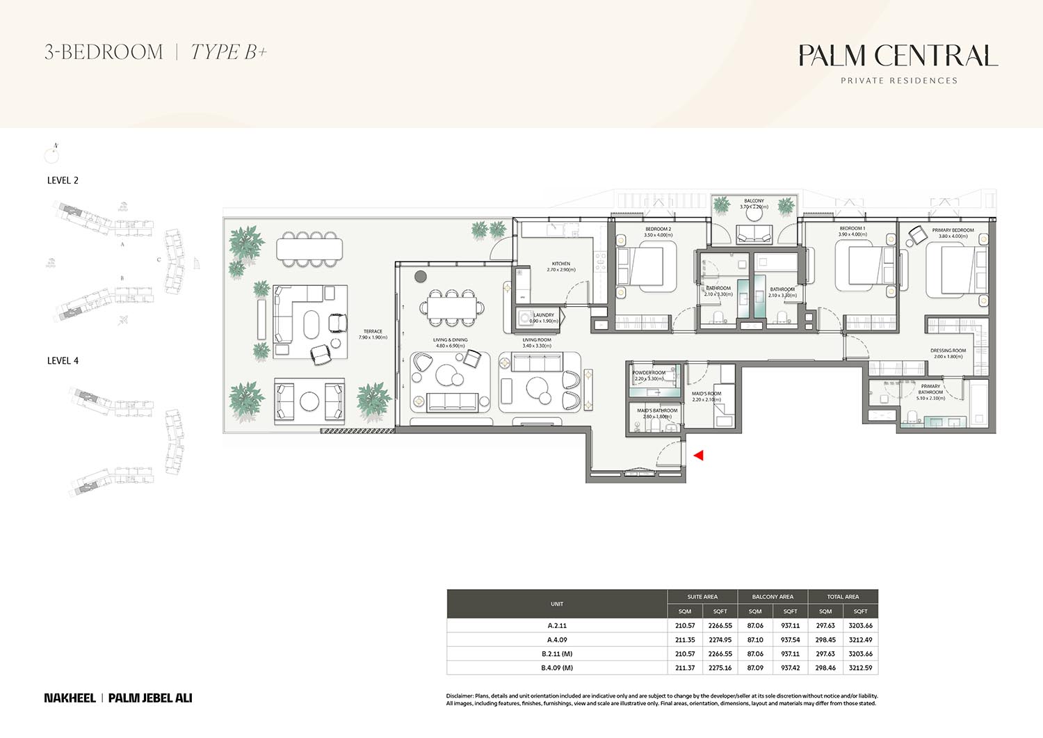 Palm Central Private Residences are selected with extensive floor plans of 1 to 5-bedroom apartments along with townhouses and penthouses at ease. The luxury apartments have open rooms with self-glazing balconies, and the larger units are enlarged to the terrace with the sea view. Townhouses have access to beaches and living spaces are double height and penthouses reinvent exclusivity with their own pools, terraces and spectacular views of the skyline. All the units are highlighted by the openness, light and informal indoor-outdoor living with sophisticated finishes, lots of storage area and personal garages that combine grace and utility to everyday living on the island.