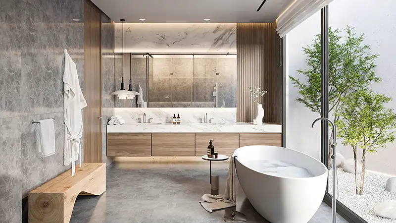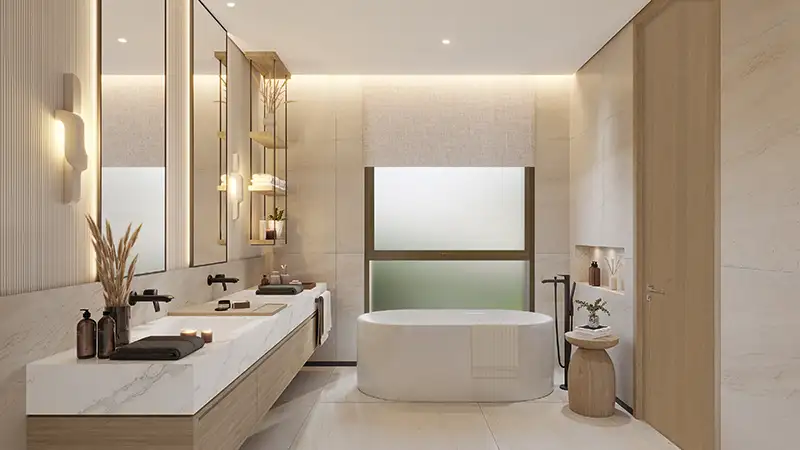 - Interiors are defined by natural materials, soft palettes, and floor-to-ceiling glazing that merges indoor elegance with outdoor tranquillity.