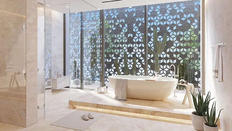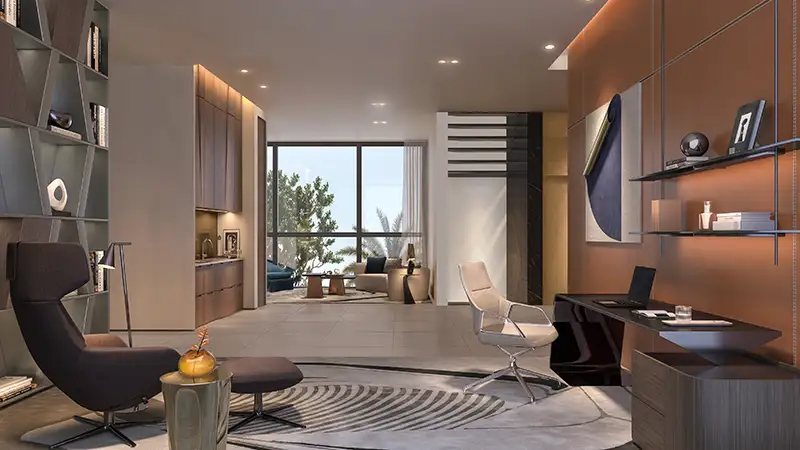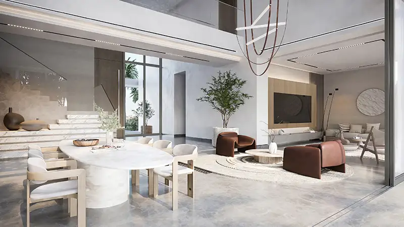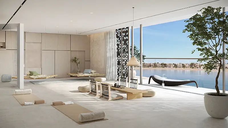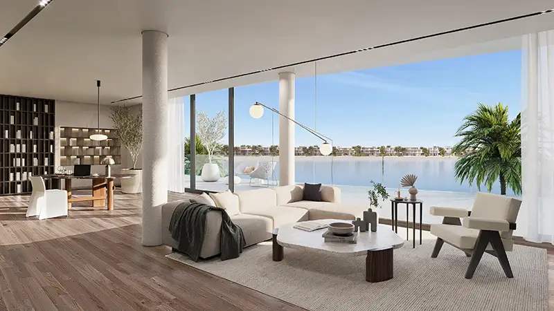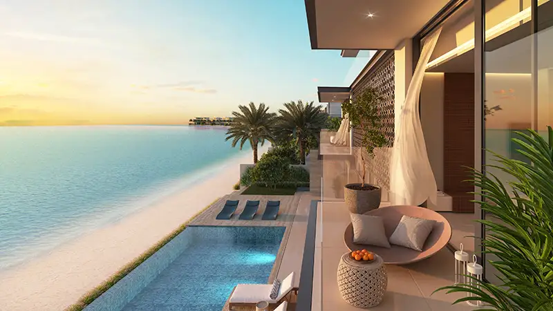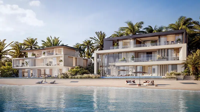 - Each residence features expansive layouts, double-height ceilings, rooftop lounges, panoramic terraces, and private pools that open directly to the Arabian Gulf.