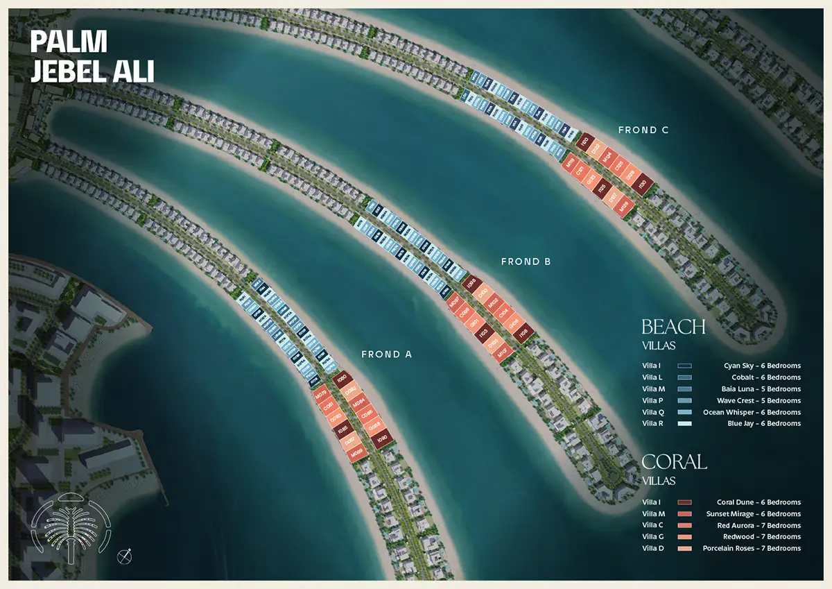 - Iconic waterfront masterpiece, redefines Dubai’s coastline with its visionary design of interconnected islands and fronds, creating a new global benchmark.