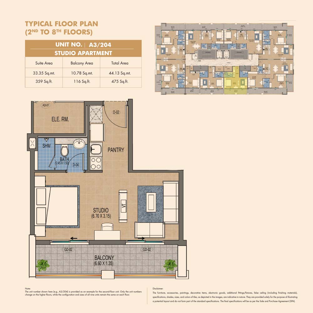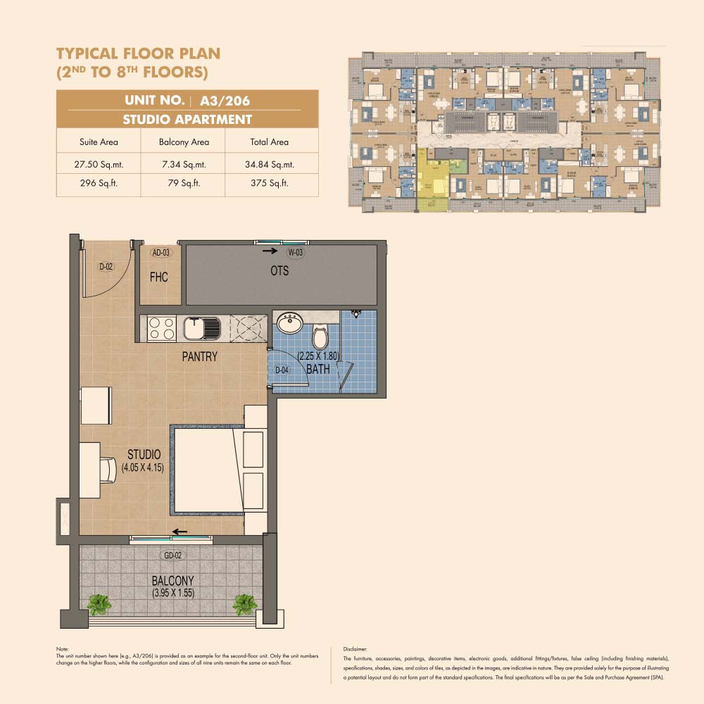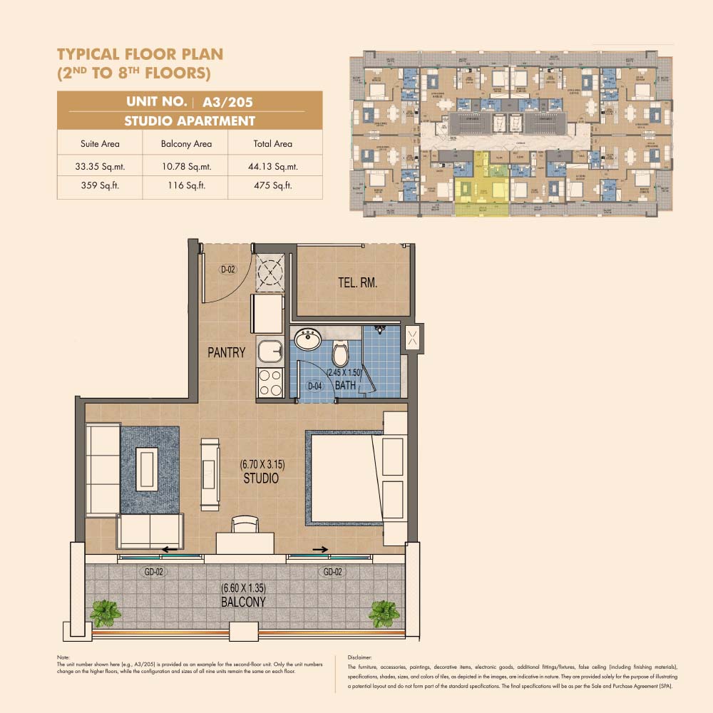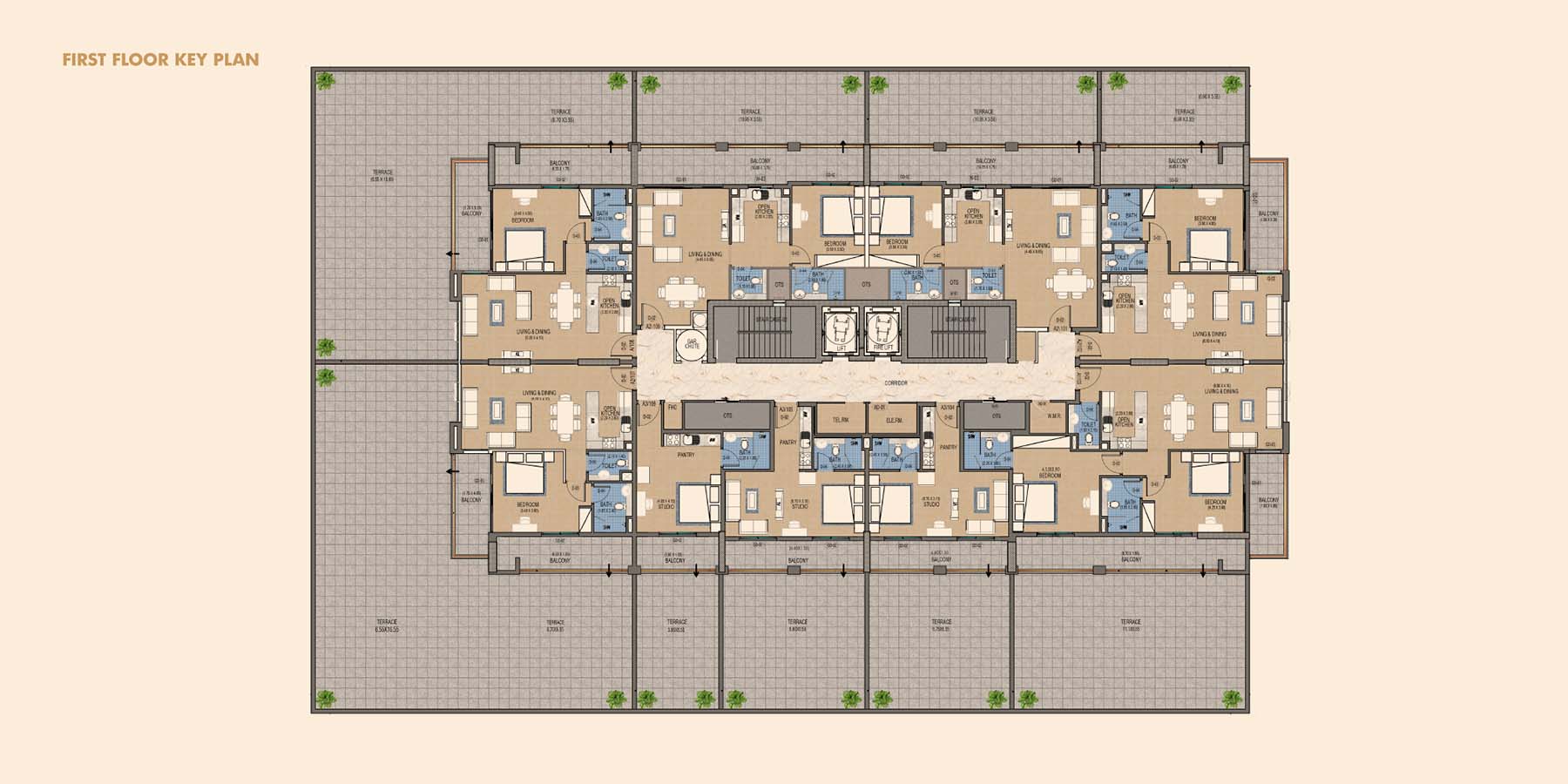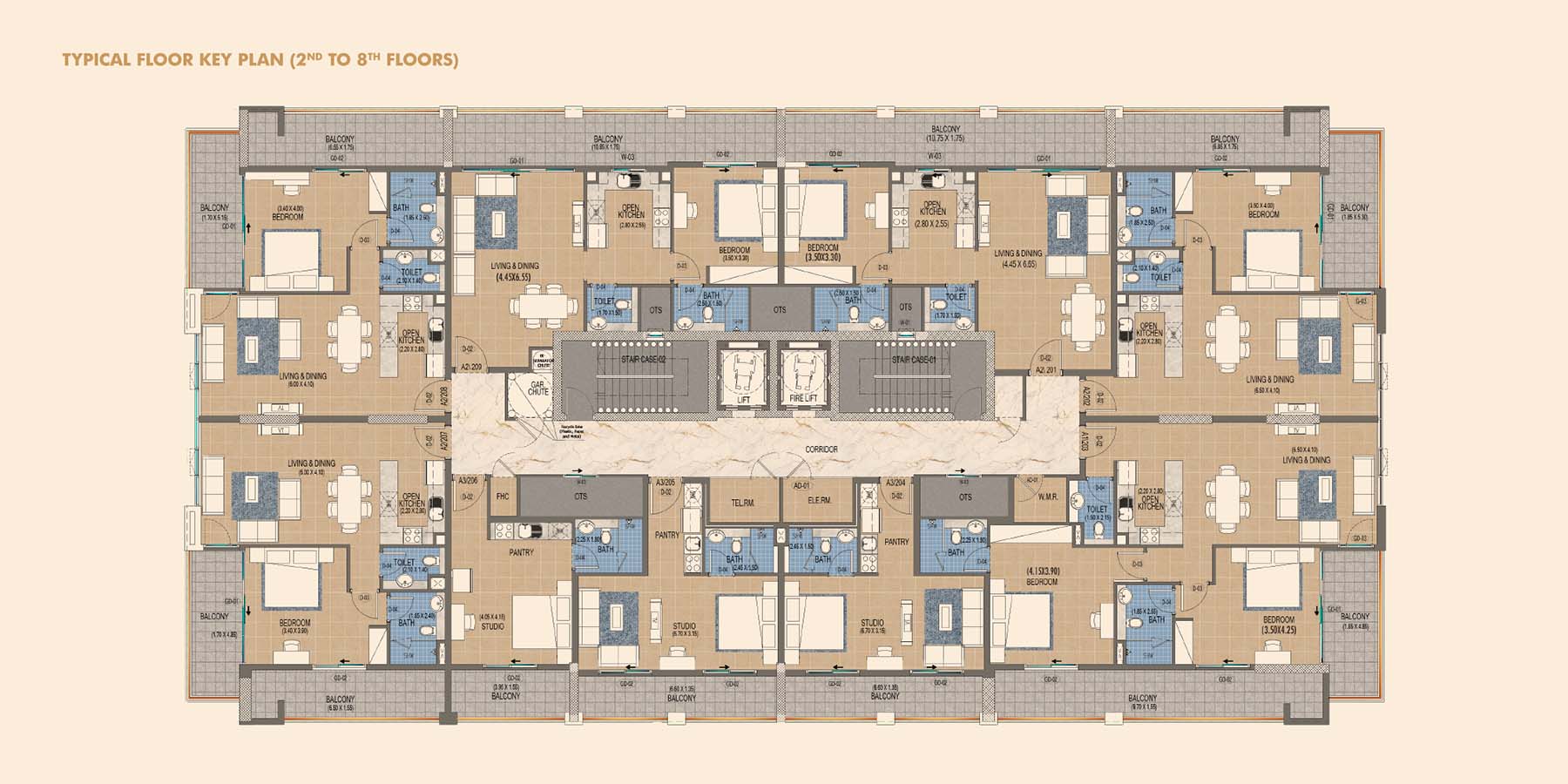 Triana Residences provides a choice of well-considered floor plan of studios, 1 and 2-bedroom apartments that suits various requirements. The construction includes the lovingly designed residences that are equally balanced in form and functionality and bring the modernity and comfortability in the interior design. All the homes are built in Vastu compliance that improves space balance and layout rationale to instil wellbeing and movement conveniently. Bountiful glazing, open living spaces, and strategically located functional spaces make the homes to appear open, bright and practical.