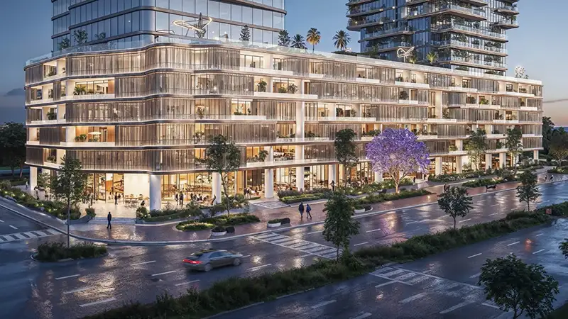 - A landmark mixed-use development that seamlessly blends residential living, office spaces, and curated retail within a single contemporary destination.