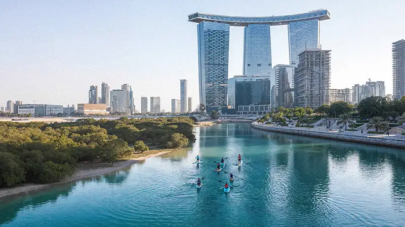 The concept of design is based on the idea of making it a complete lifestyle destination as opposed to a residential or office address in Abu Dhabi. The towers are graciously elevated at a podium, which accommodates common facilities, green spaces and social spaces allowing interactions without inconvenience to privacy. Having a three-basement-level setup, ground level and five podium levels, the development guarantees maximum use of space and circulation. Tower A and Tower B are focused office high-rises of 22 and 26 floors respectively, whereas Tower C allows residential living of 22 stories to create a whole ecosystem of efficiency and comfort. The combination of the natural elements, panoramic views of the canal and the open terraces improve the sense perception and make the construction both aesthetically interesting and more efficient.