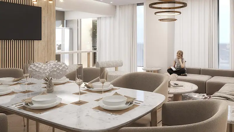 The residential tower has a wide variety of residential housing that is customized to fit into various lifestyles with compact studios, to spacious three bedroom apartments and duplexes. All units will be built to make the most of the natural light and offer interrupted visions of the canal and city skyline, which will offer a peaceful and exciting life. Its interiors are characterized by openness, functionality, and modern finishes, which means that comfort and style are applied to every single home. This is also applied to circulation spaces and residents have privacy and connectivity in the building.