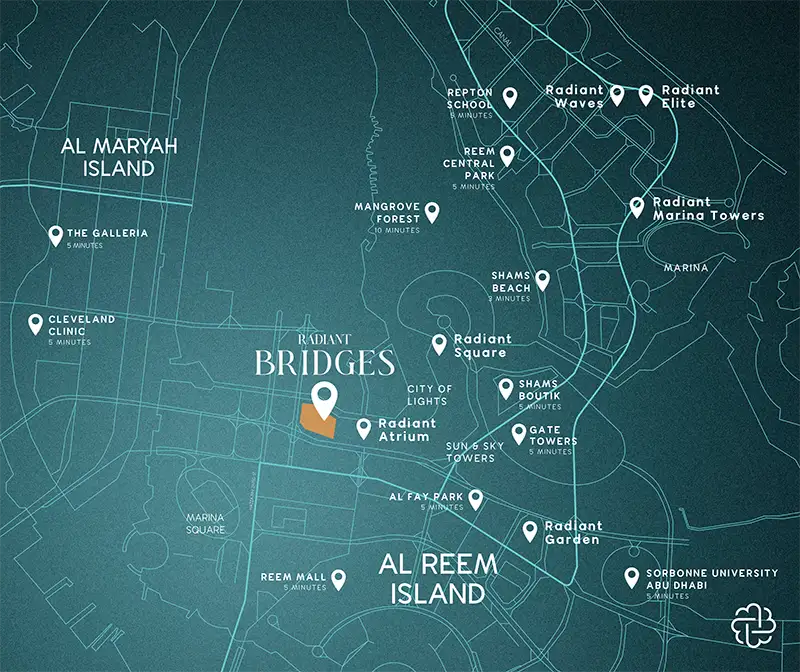 Radiant Bridges at Al Reem Island is an incredible landmark by Radiant Real Estate, visible with gracefully blending into the contemporary architecture with studios to 3-bedroom apartments and duplexes. As, the high-rise façade marks the new era of mixed-use development in which life, work, and community merge spontaneously. This remarkable project will be strategically located on Al Reem Island and is a testimony to a visionary outlook towards connectivity, aesthetic values coupled with functionality. The building will consist of three specially crafted towers, rising with 22 to 26-floors with two focused on the dedication of the premium office area and one residential tower that will be interconnected by a multi-storey podium that will serve as a backbone of the whole project. Architecture is characterized by curves, piled-up terraces, and modern glass-facade, which captures light and motion and makes the structure dynamically but still polished, in all skyline directions.