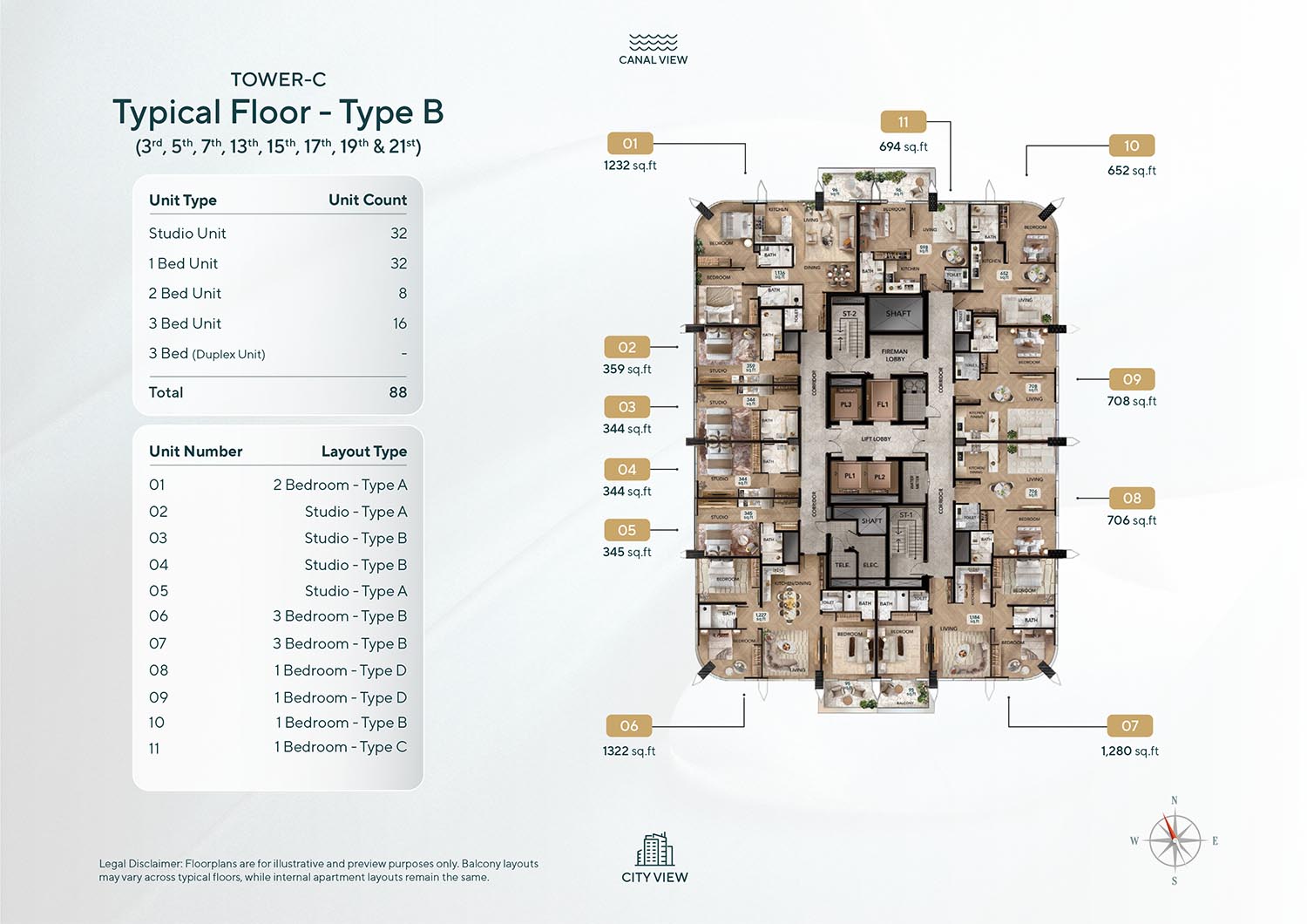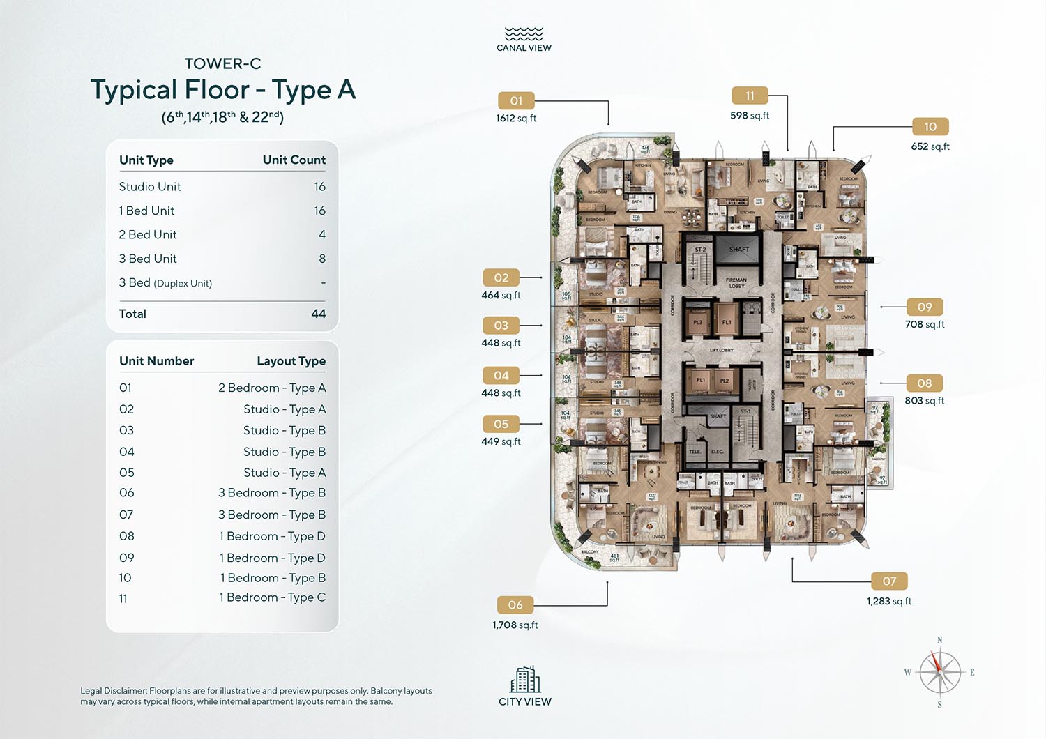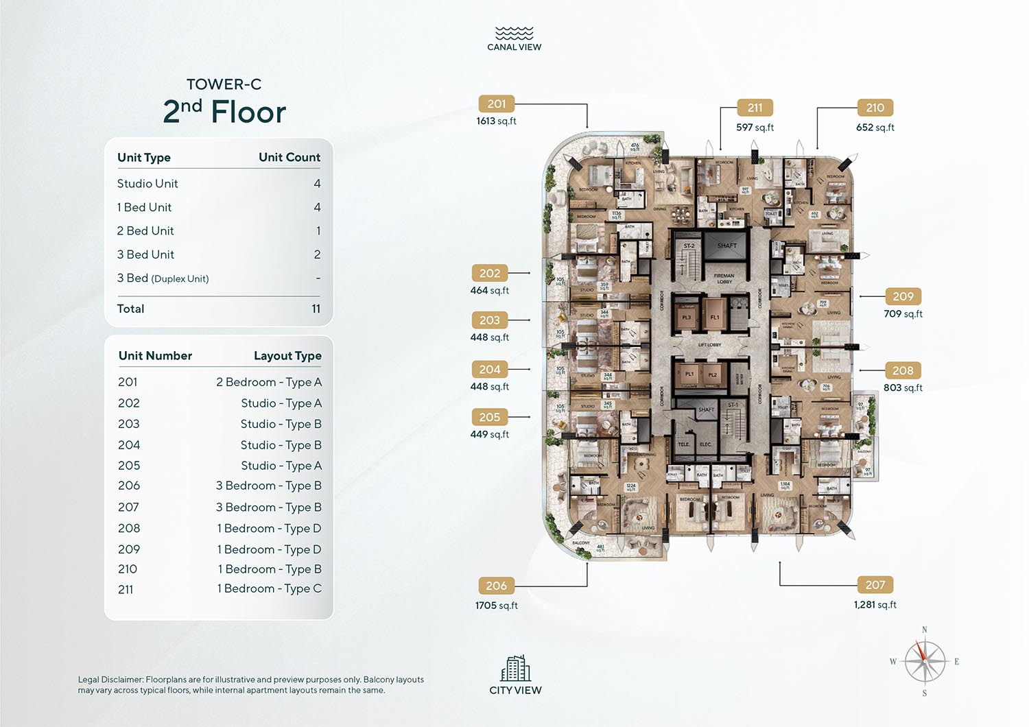 Radiant Bridges floor plan has been designed so as to suit the complete spectrum of lifestyle choices based on studios, 1, 2 and 3-bedroom apartments and 3-bedroom duplexes. The development provides a wide range for ease of buyers as well as spacious duplex apartments that can be used to get more living space. Unit sizes range between small layouts that can accommodate individuals and large layouts that can accommodate families, all expanse will mean flexibility and comfort. Each house is well designed to make the maximum use of natural lighting, as much space as possible, and scenic canal or city view. The designs focus on functionality, modern design and smoothness of internal and external integration to support a higher living standard.