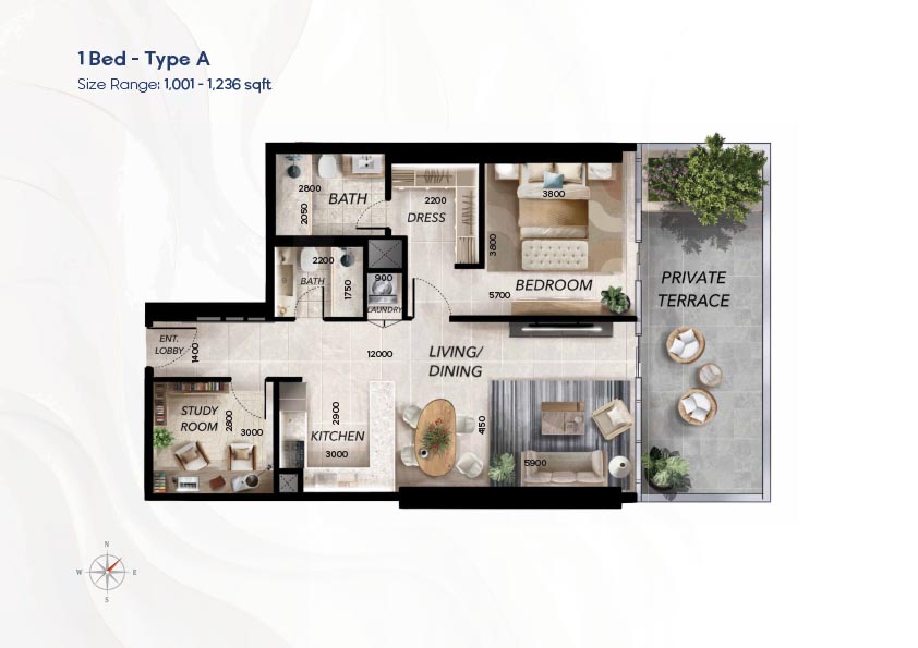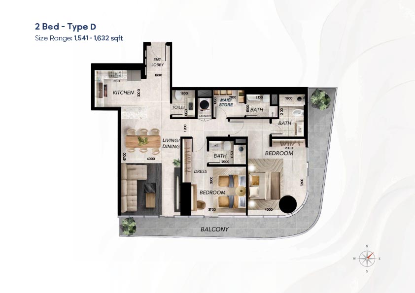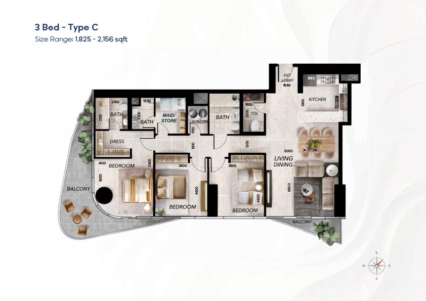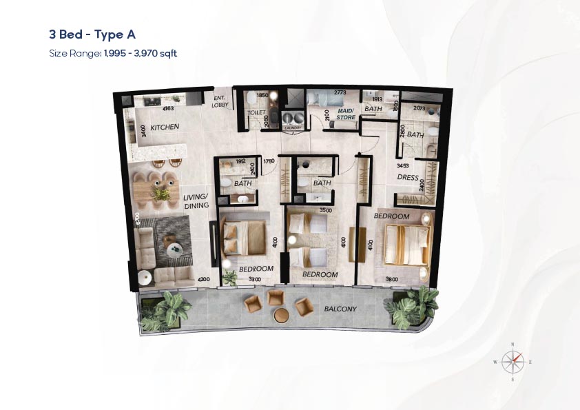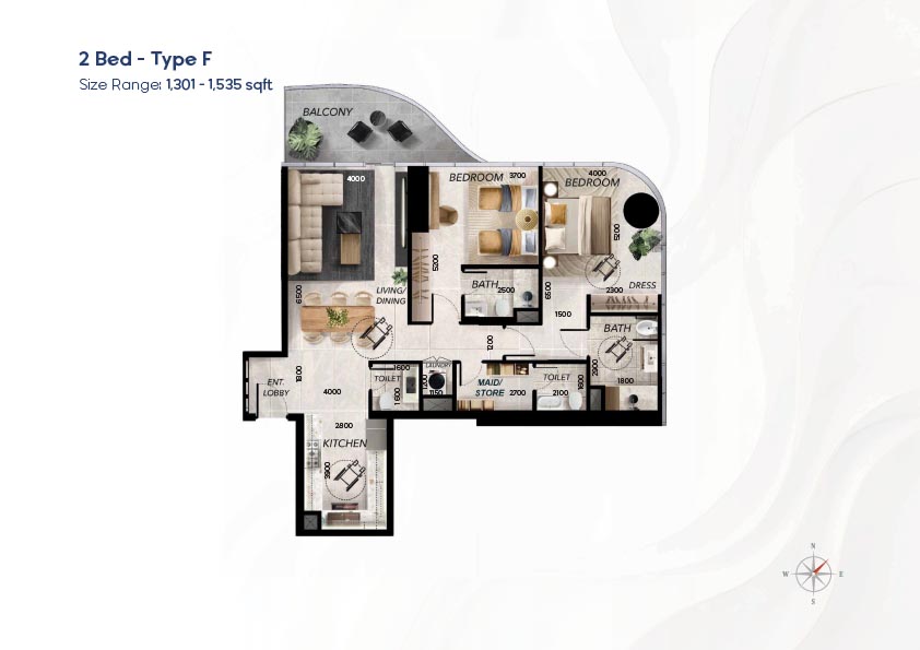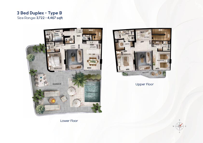 Radiant Waves has a diverse selection of floor plan that can accommodate studios to 3-bedroom apartments, as well as 1 to 4-bedroom sky villas. The layouts focus on the effective use of space, light, and a continuum between the indoor and outdoor space using balconies and terraces. Duplex houses offer the advantage of vertical living where there are distinct private and social space whereas larger houses offer an expansive living room and spectacular views. The variety of layouts provides the flexibility of the individuals, couples, and families and the luxury-oriented buyers.