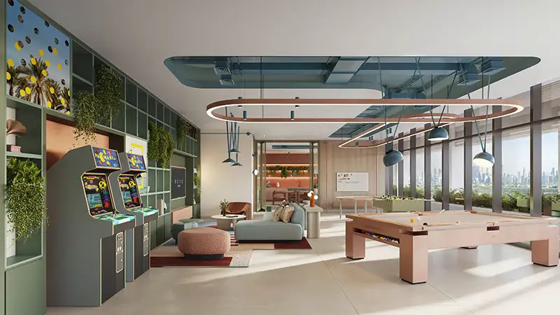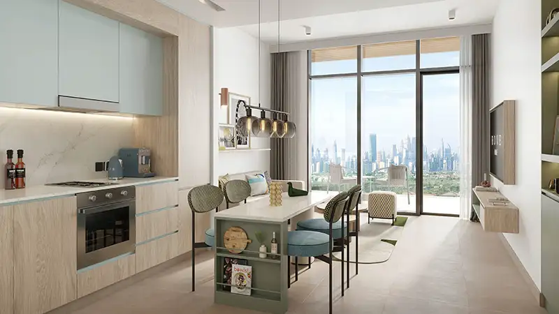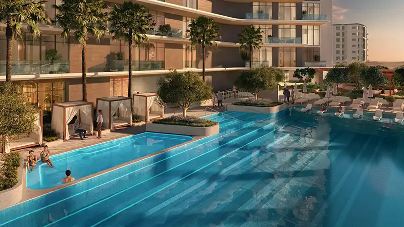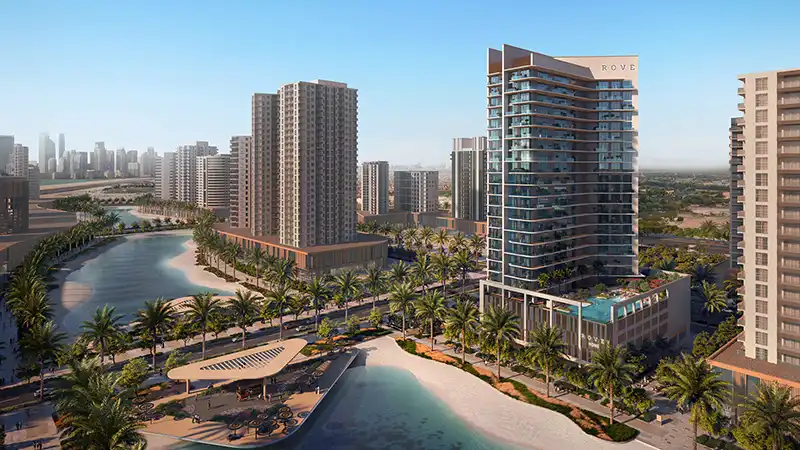 Meydan Horizon ROVE Home master plan is an architectural utterance of style and life style invention. The community is designed in the form of a swimmable crystal lagoon, which is illustrative of the constant transformation of Dubai into a place of wellness and sustainable living. Houses are designed to allow the greatest possible views of the lagoon and green areas, which provide privacy and at the same time, a thriving social flow. There are pedestrian-friendly paths, retail areas, and waterfront boardwalks; so as to keep all the areas of this development to be explored and to be interacted with. Its lagoon at the center of the community is the core of its activity; which offers residents leisure activities that find their way into kayaking, paddle boarding, and picturesque areas of leisure.