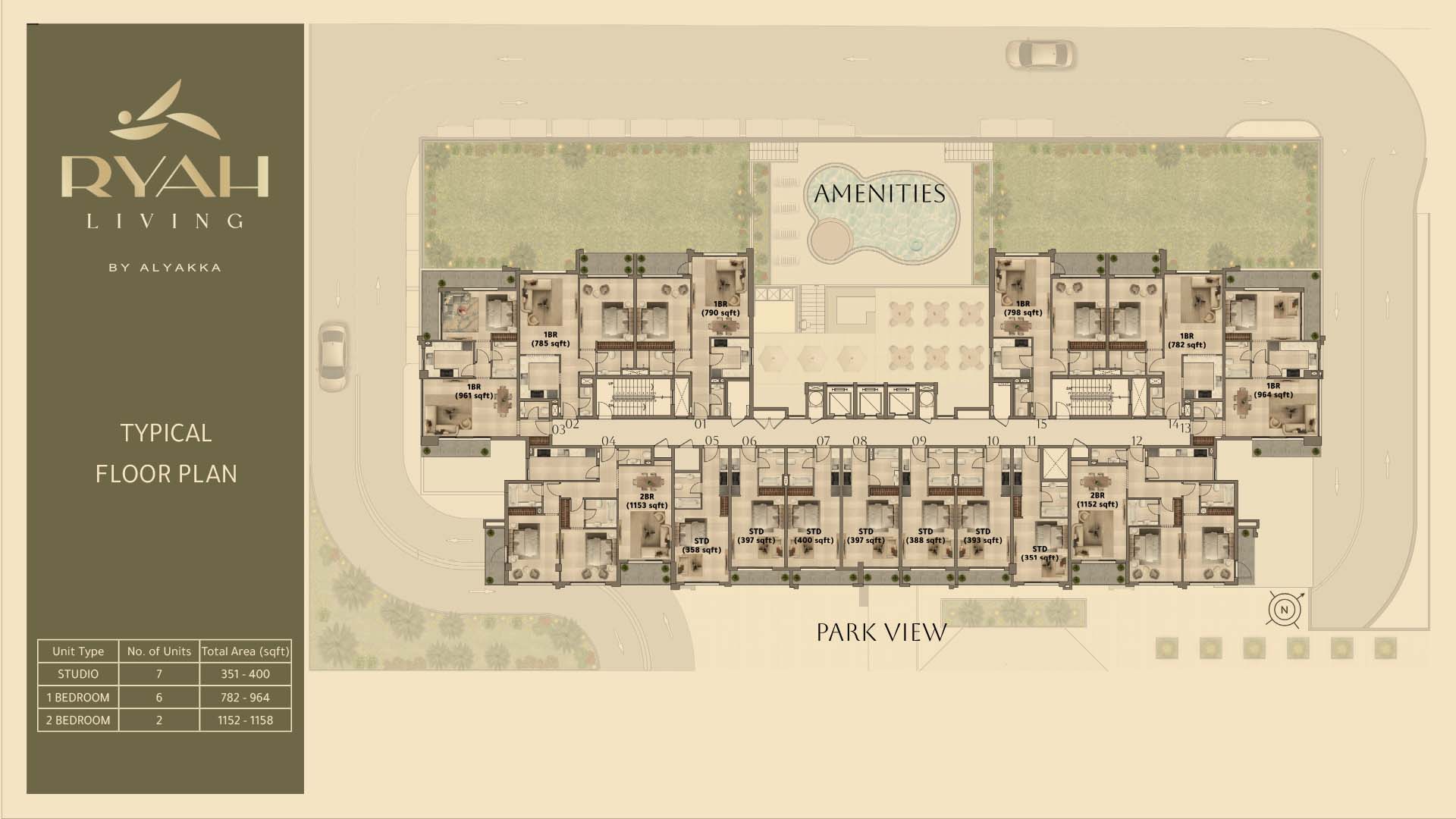 The floor plans at Ryah Living are designed with exclusive class studios, 1 and 2-bedroom apartments that are open and yet practical. With a combination of premium class, the apartments will be roomy enough to allow plenty of space and natural sunlight to enter the room and provide a welcoming and comfortable environment. The living and dining rooms are open that flows smoothly to individual balconies, which attracts inner-outdoor connectivity. There are private and serene placement of bedrooms, bathrooms that have been equipped with complete details, and modern finishes and conditioning.