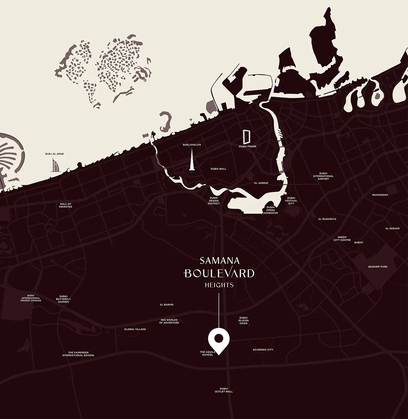 Samana Boulevard Heights at DLRC (Dubailand Residence Complex) stands as one of the premier residential advancement by Samana Developers with studios, 1 & 2-bedroom apartments with pool. Experience the warm ripple across your private pool, where you enjoy the subtlety of the light in the morning coffee flavour and evening conversation linger a little longer. Even the very first step into the house opens the door to a life pace that is exquisitely slow, that is classic modern, characterized by symmetries, perfect proportions, details that speak softly, not loudly. It is not an expression of luxury; it is the art of cosiness. It is a vacation life, condensed into every day, whose architecture defines peaceful view, whose interior comforts, and whose services turn petty details thereof into a cherished ritual.