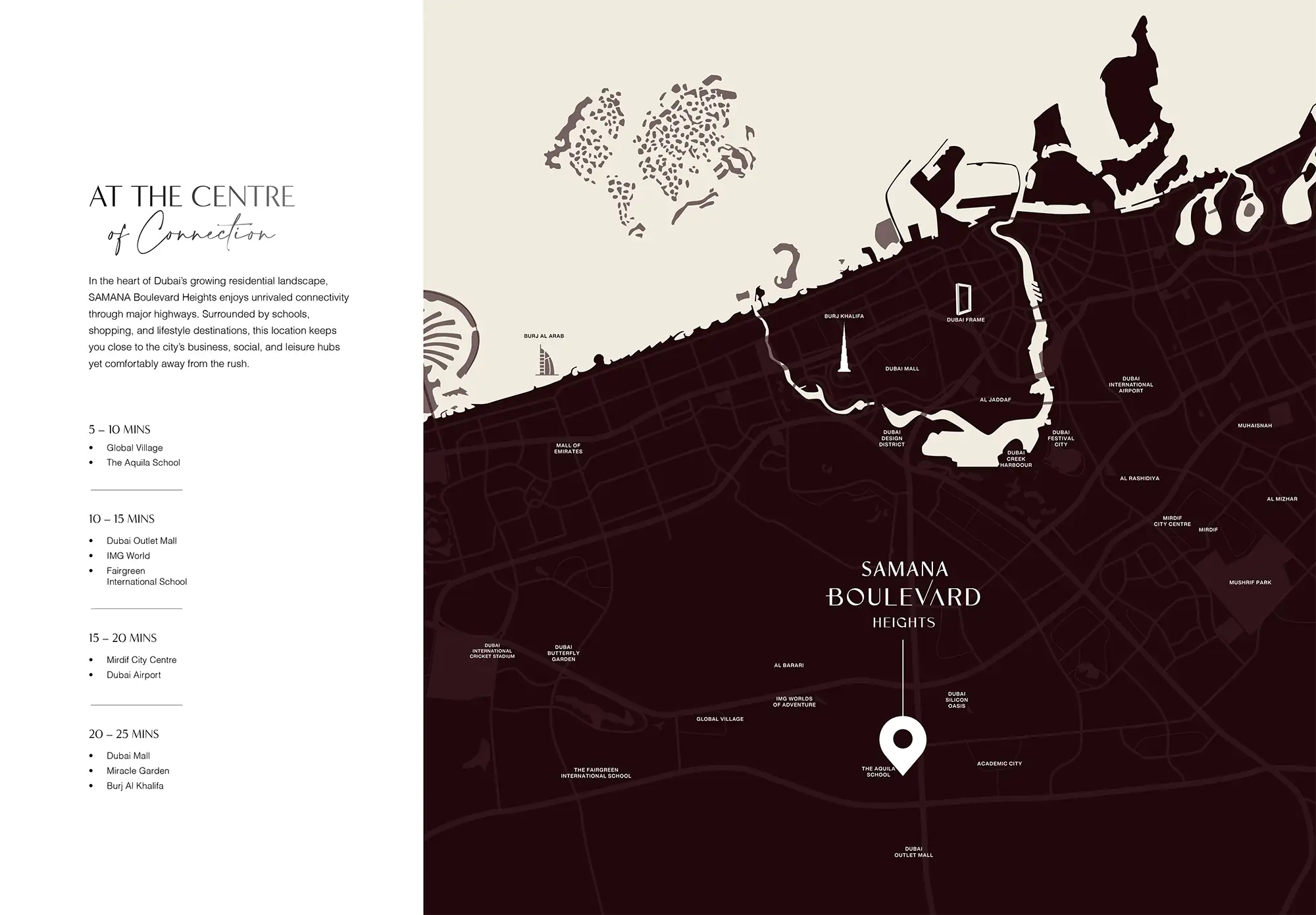 - Centrally located at Dubai Land Residence Complex, with effortless connectivity to major highways including Sheikh Mohammed Bin Zayed Road.