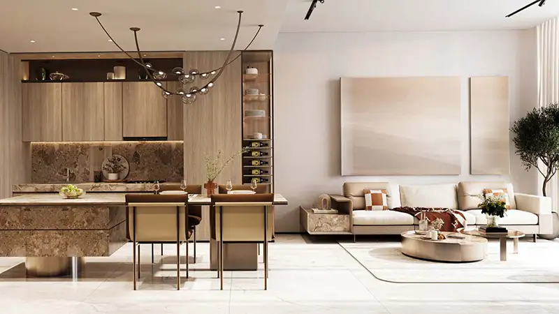 The interior is to be made to continue the impression of openness outside. Residential buildings are defined to take advantage of natural light and endless natural sceneries which has made the houses appear spacious and relaxing. Interiors are characterized by the use of soft colour palette, elegant finishes, and minimalistic detailing that does not disrupt the scenery as the centerline element. The designs promote easy lifestyle in which there are no clear distinction between indoor and outdoor living; this can be described as a nature of the Island inspired living.