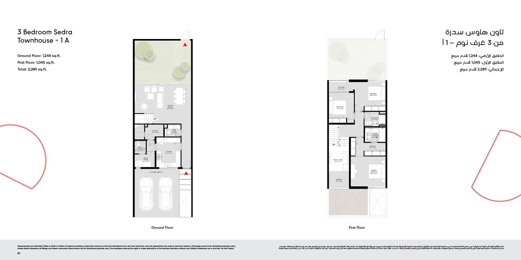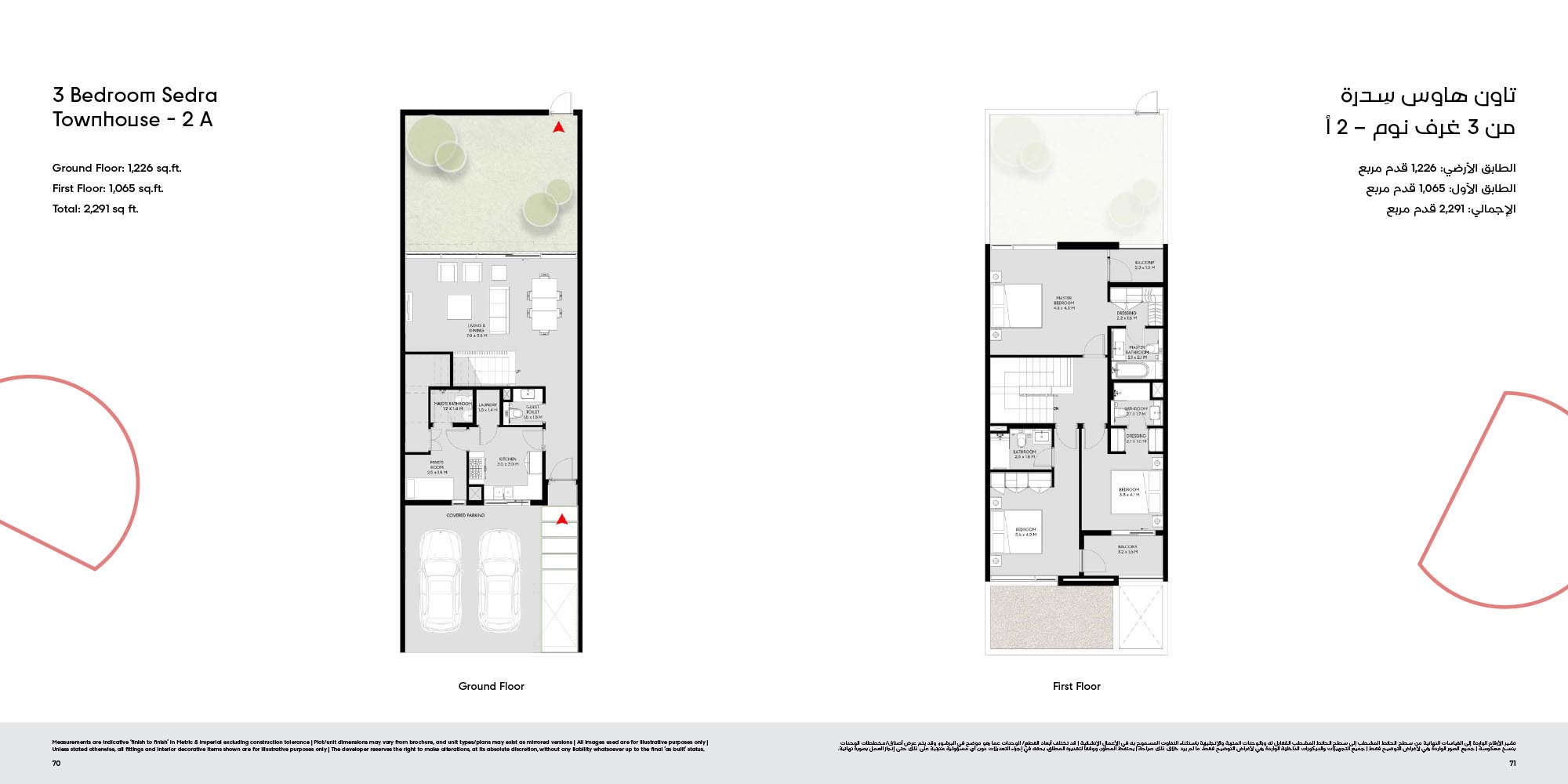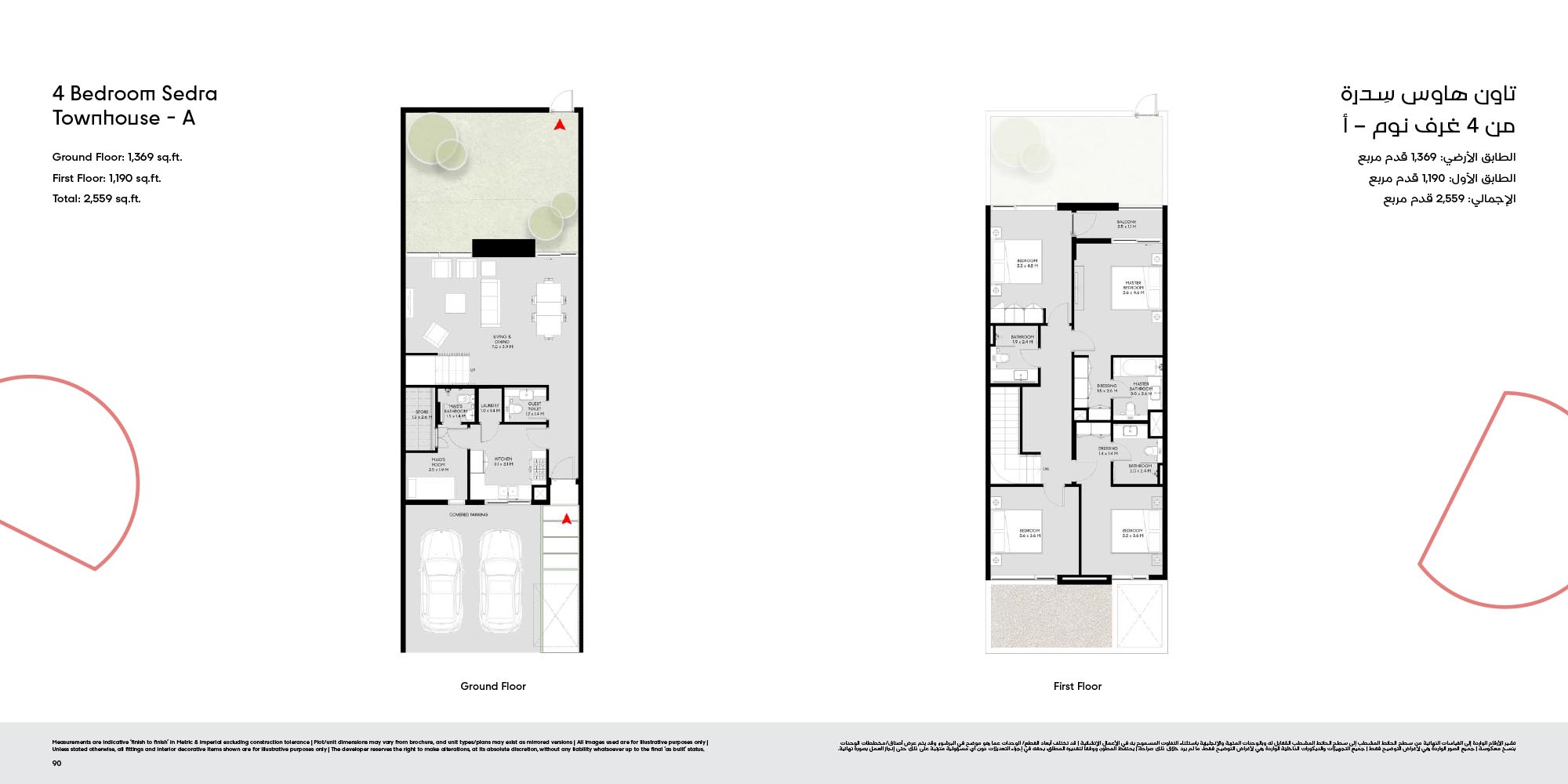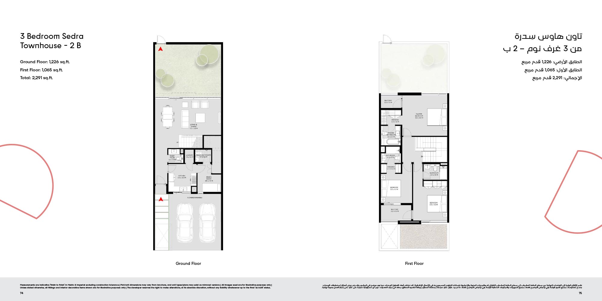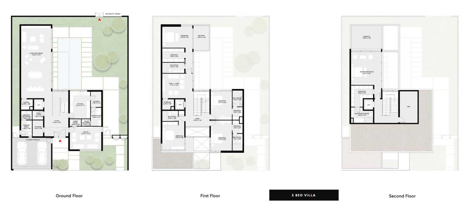 The floor plan of Masaar 3 Sedra comes with 2, 3 & 4-bedroom townhouse and 4 & 5 bedroom villas at ease. The townhouses will have open living rooms, stylish kitchens, large bedrooms and own outdoor rooms where one can relax. The villas take the experience to greater heights by offering bigger plans, high quality finish, adult-sized master suites and more privacy in the living areas. Big windows provide interiors with natural light, and outward extension of indoor living is in terms of terraces, balconies and garden areas. Easy circulation, generous storage space and finishes are used to form homes that are conducive to contemporary lifestyles.