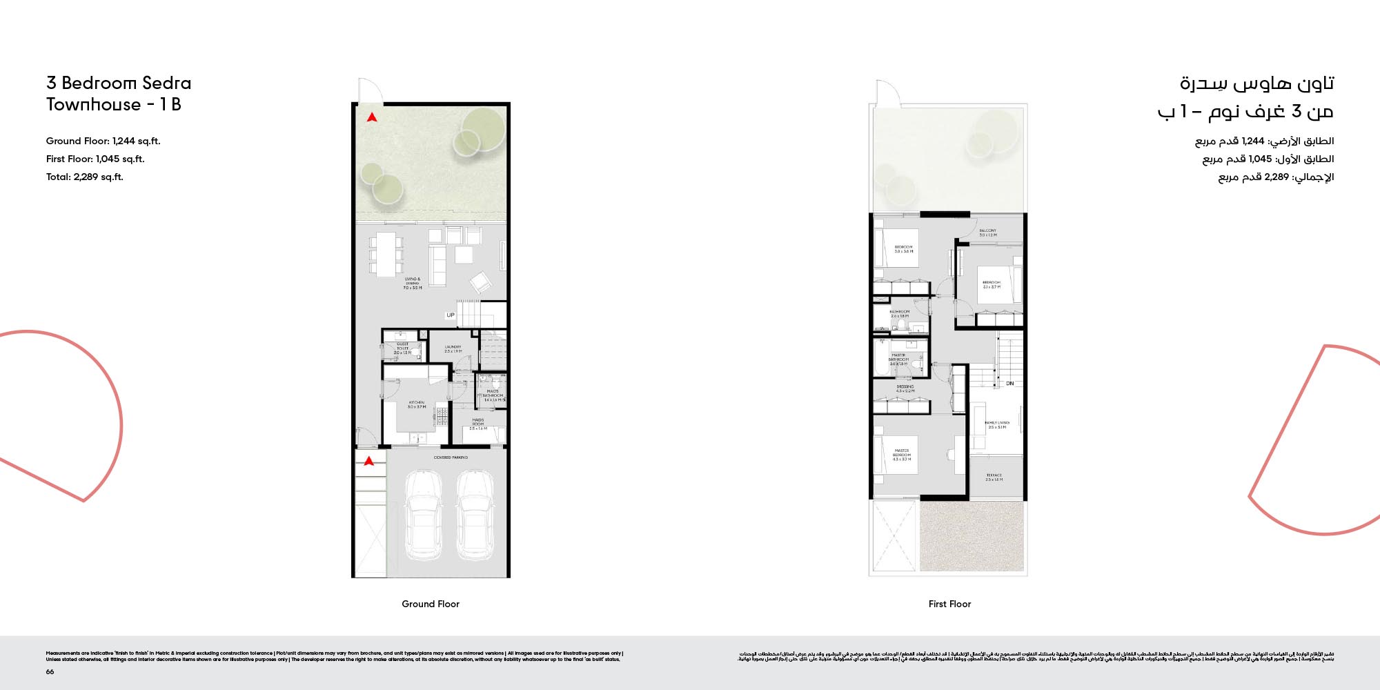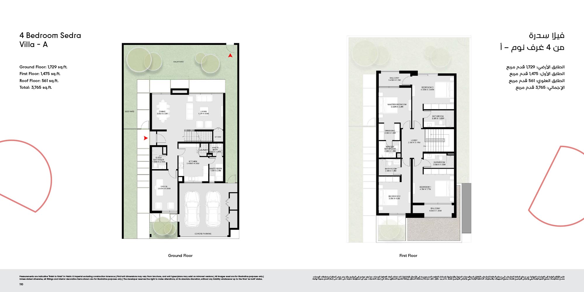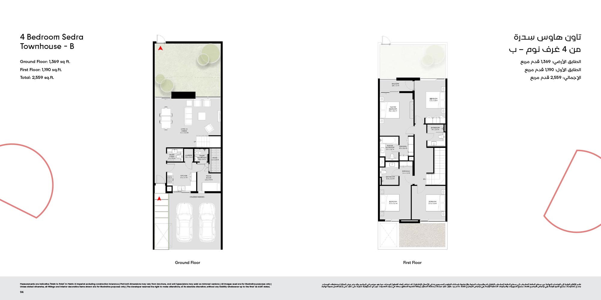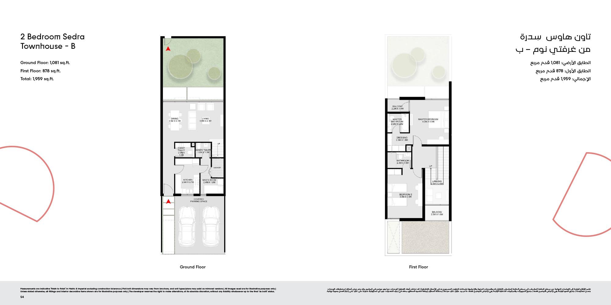 The floor plan of Masaar 3 Sedra comes with 2, 3 & 4-bedroom townhouse and 4 & 5 bedroom villas at ease. The townhouses will have open living rooms, stylish kitchens, large bedrooms and own outdoor rooms where one can relax. The villas take the experience to greater heights by offering bigger plans, high quality finish, adult-sized master suites and more privacy in the living areas. Big windows provide interiors with natural light, and outward extension of indoor living is in terms of terraces, balconies and garden areas. Easy circulation, generous storage space and finishes are used to form homes that are conducive to contemporary lifestyles.