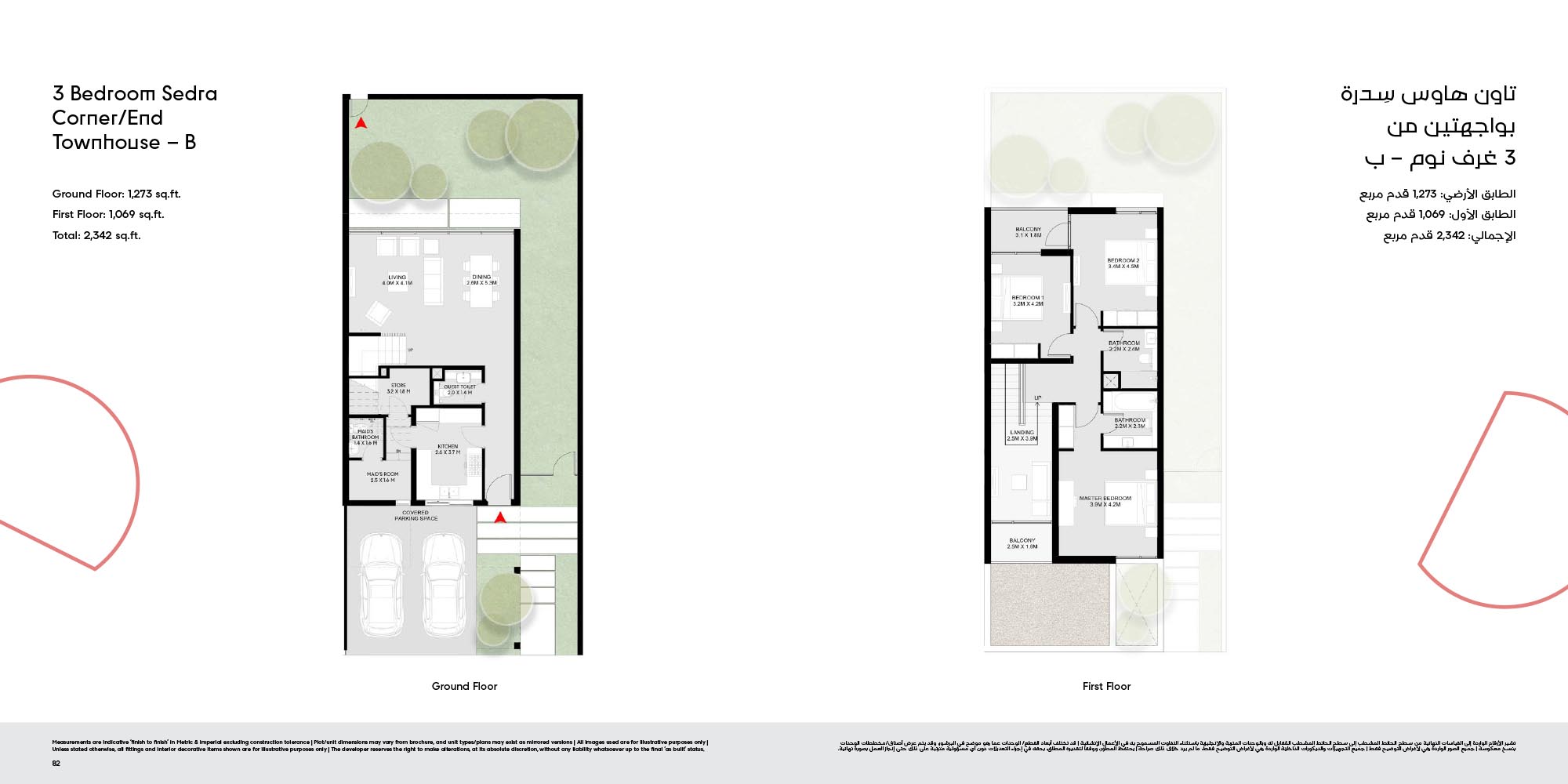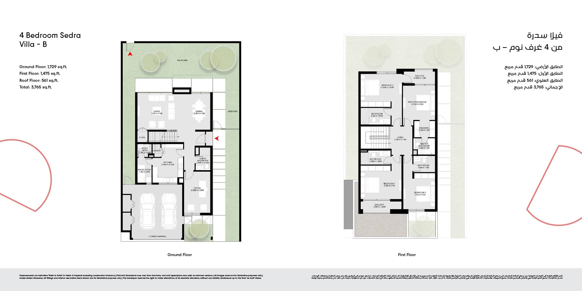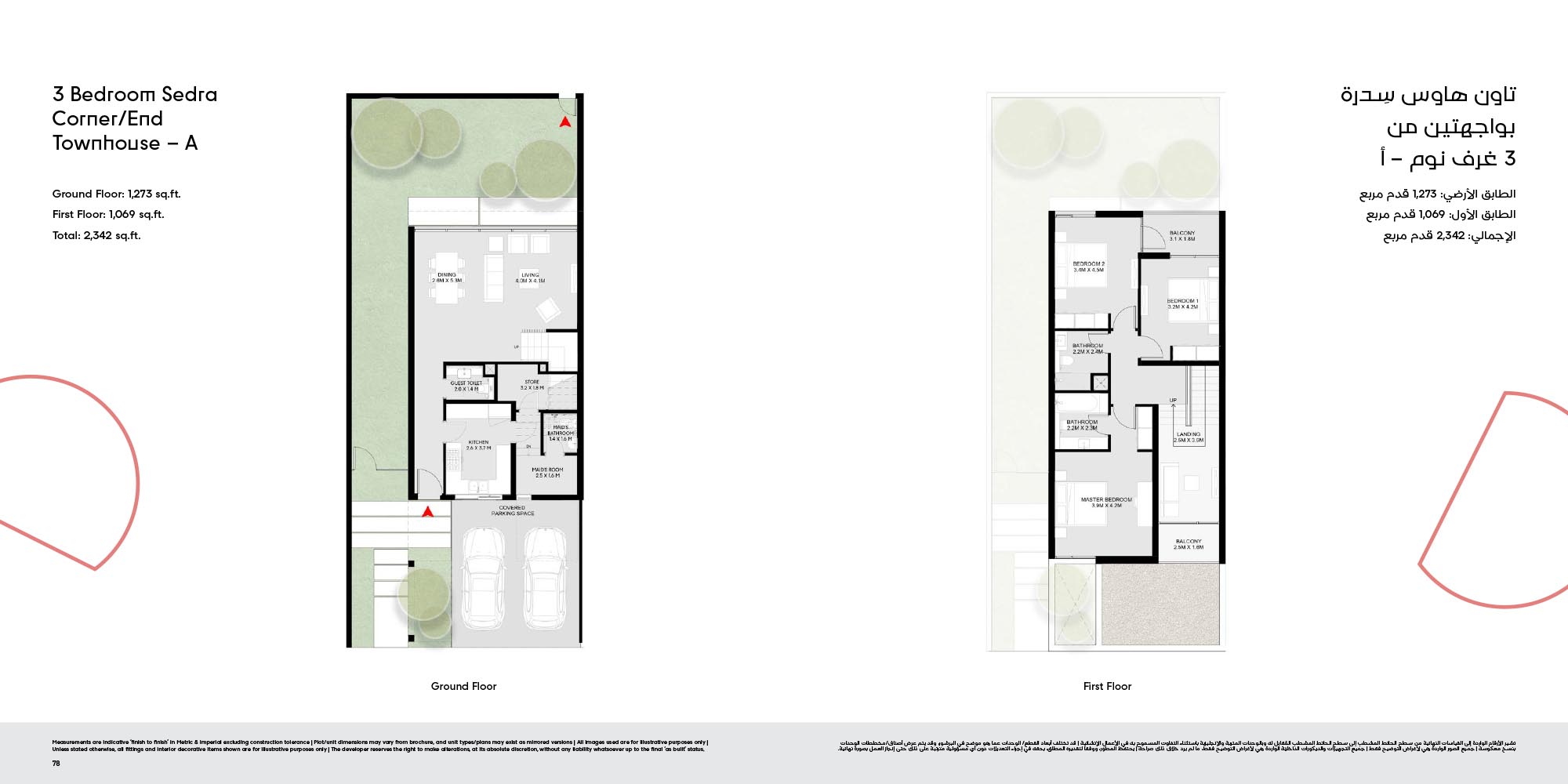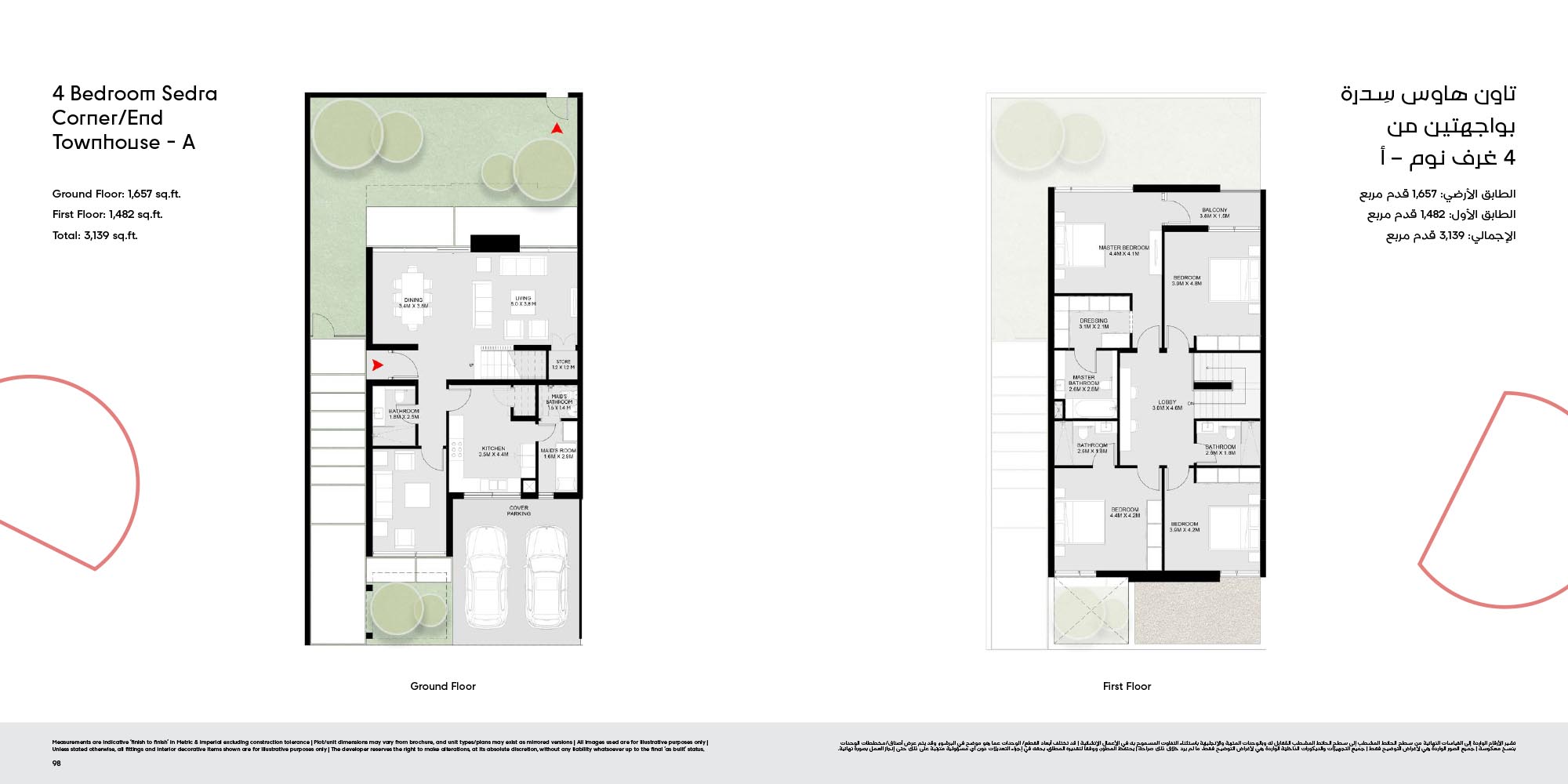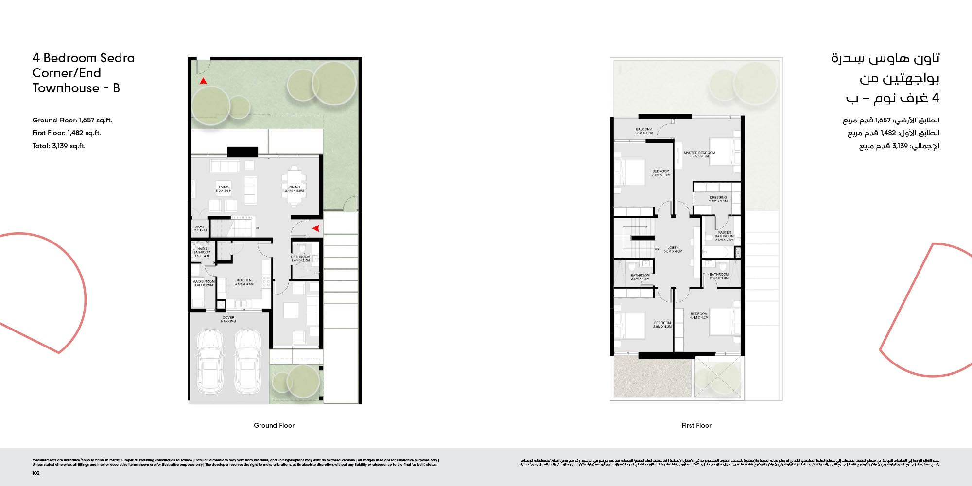 The floor plan of Masaar 3 Sedra comes with 2, 3 & 4-bedroom townhouse and 4 & 5 bedroom villas at ease. The townhouses will have open living rooms, stylish kitchens, large bedrooms and own outdoor rooms where one can relax. The villas take the experience to greater heights by offering bigger plans, high quality finish, adult-sized master suites and more privacy in the living areas. Big windows provide interiors with natural light, and outward extension of indoor living is in terms of terraces, balconies and garden areas. Easy circulation, generous storage space and finishes are used to form homes that are conducive to contemporary lifestyles.