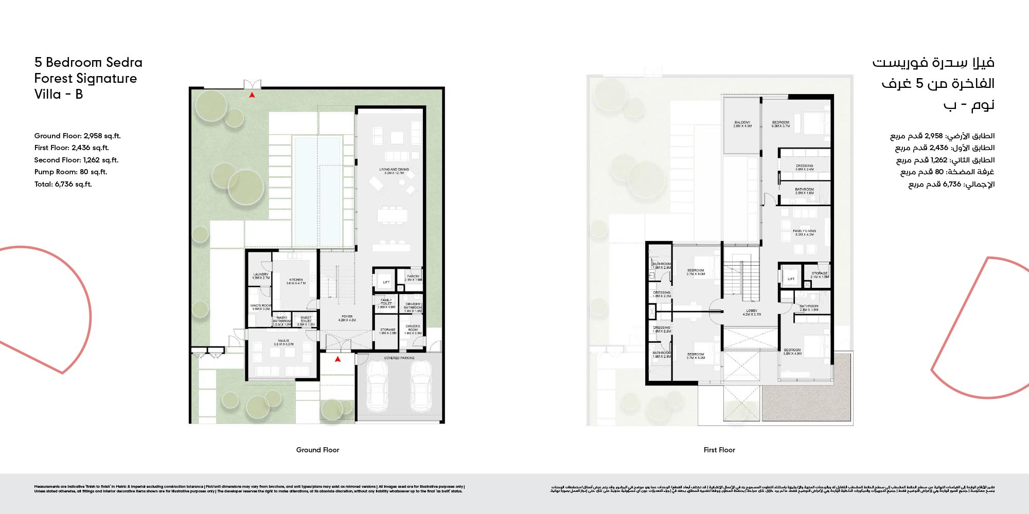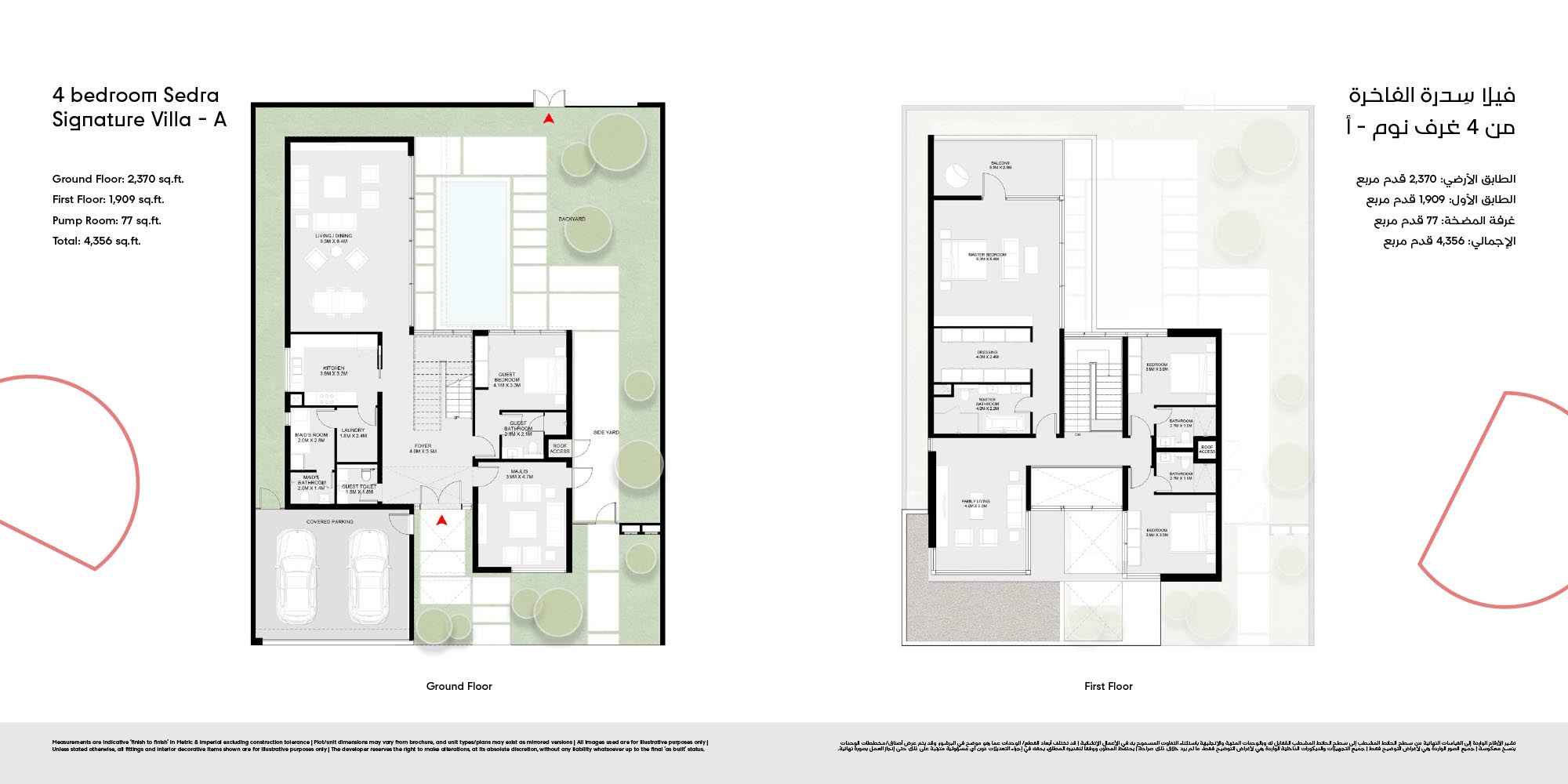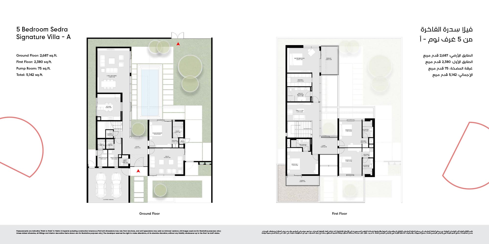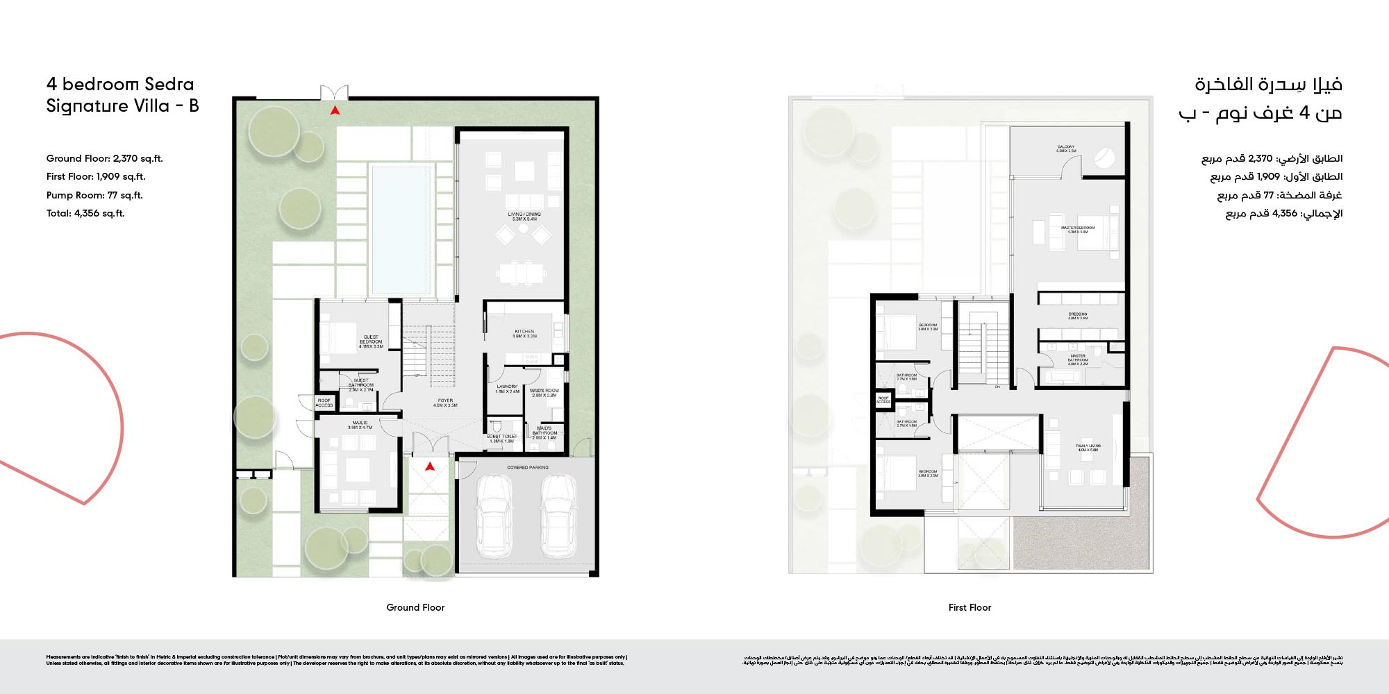 The floor plan of Masaar 3 Sedra comes with 2, 3 & 4-bedroom townhouse and 4 & 5 bedroom villas at ease. The townhouses will have open living rooms, stylish kitchens, large bedrooms and own outdoor rooms where one can relax. The villas take the experience to greater heights by offering bigger plans, high quality finish, adult-sized master suites and more privacy in the living areas. Big windows provide interiors with natural light, and outward extension of indoor living is in terms of terraces, balconies and garden areas. Easy circulation, generous storage space and finishes are used to form homes that are conducive to contemporary lifestyles.