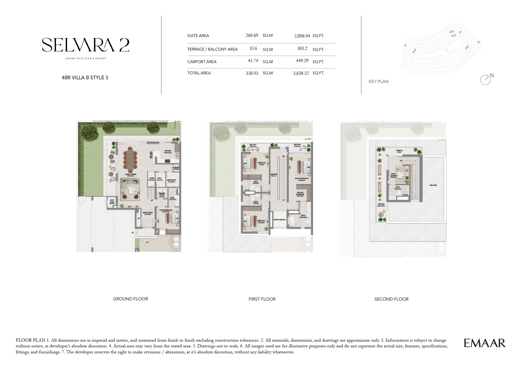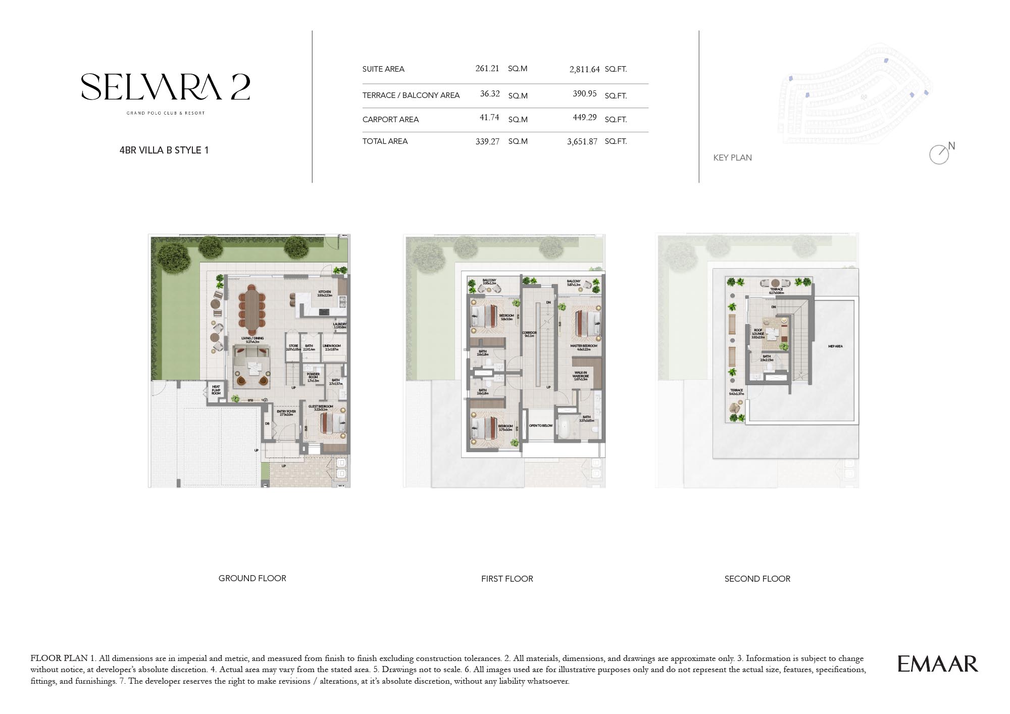 Every single floor plan at Selvara 2 displays Emaar’s abilities in shaping smart and inspiring living areas within the 4-bedroom exquisite villas. The houses are made to highlight flow, let in lots of light and provide generously-sized rooms. Villas are built to be special places where the elite feel comfortable and respected. Multiple stories, large balconies, elegant master bedrooms, en-suite bathrooms and top-quality materials bring a luxury life to each home. The floor designs include lots of natural light, privacy and usefulness, so that all residents enjoy a space that is special and welcoming just for them.