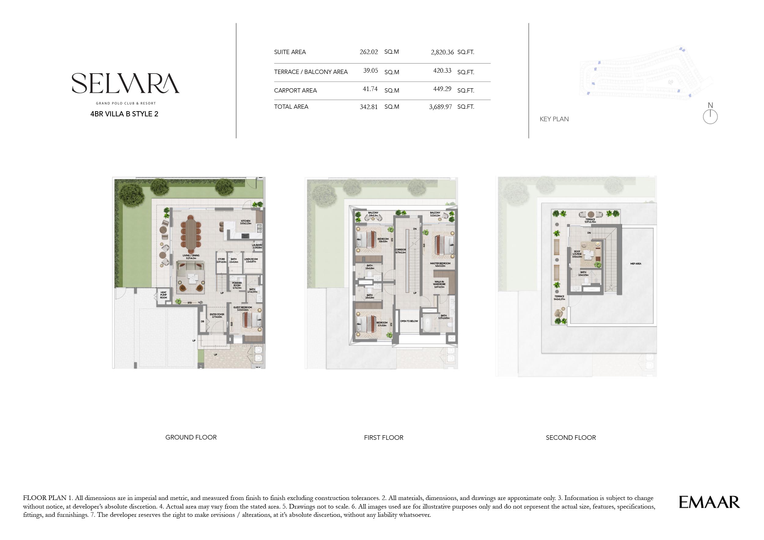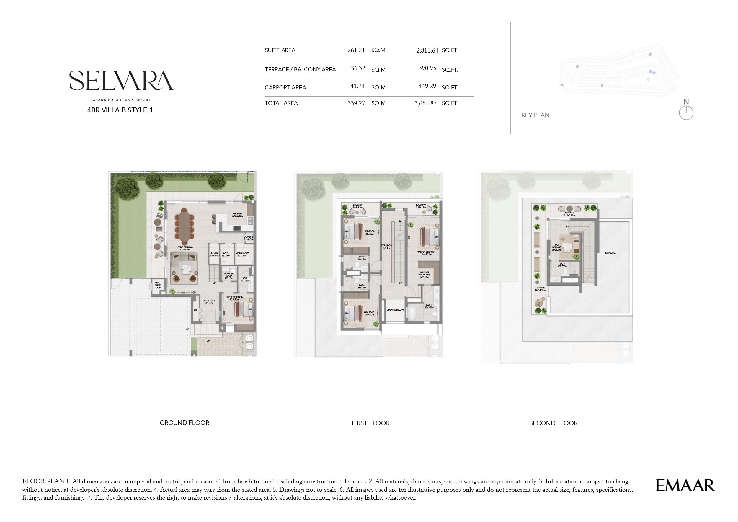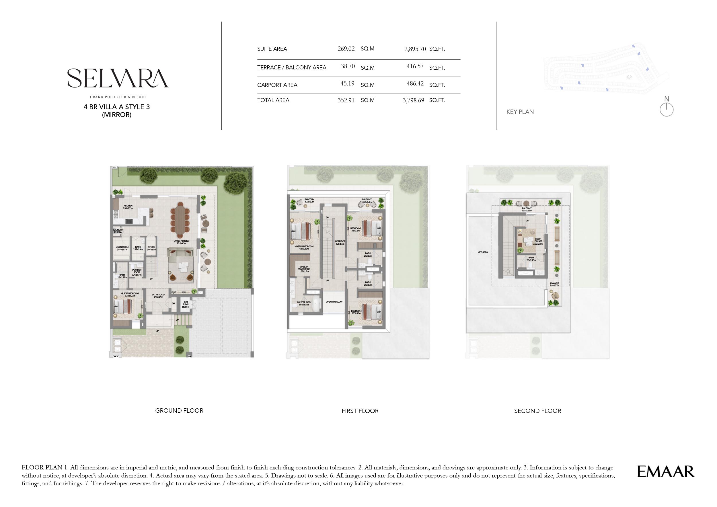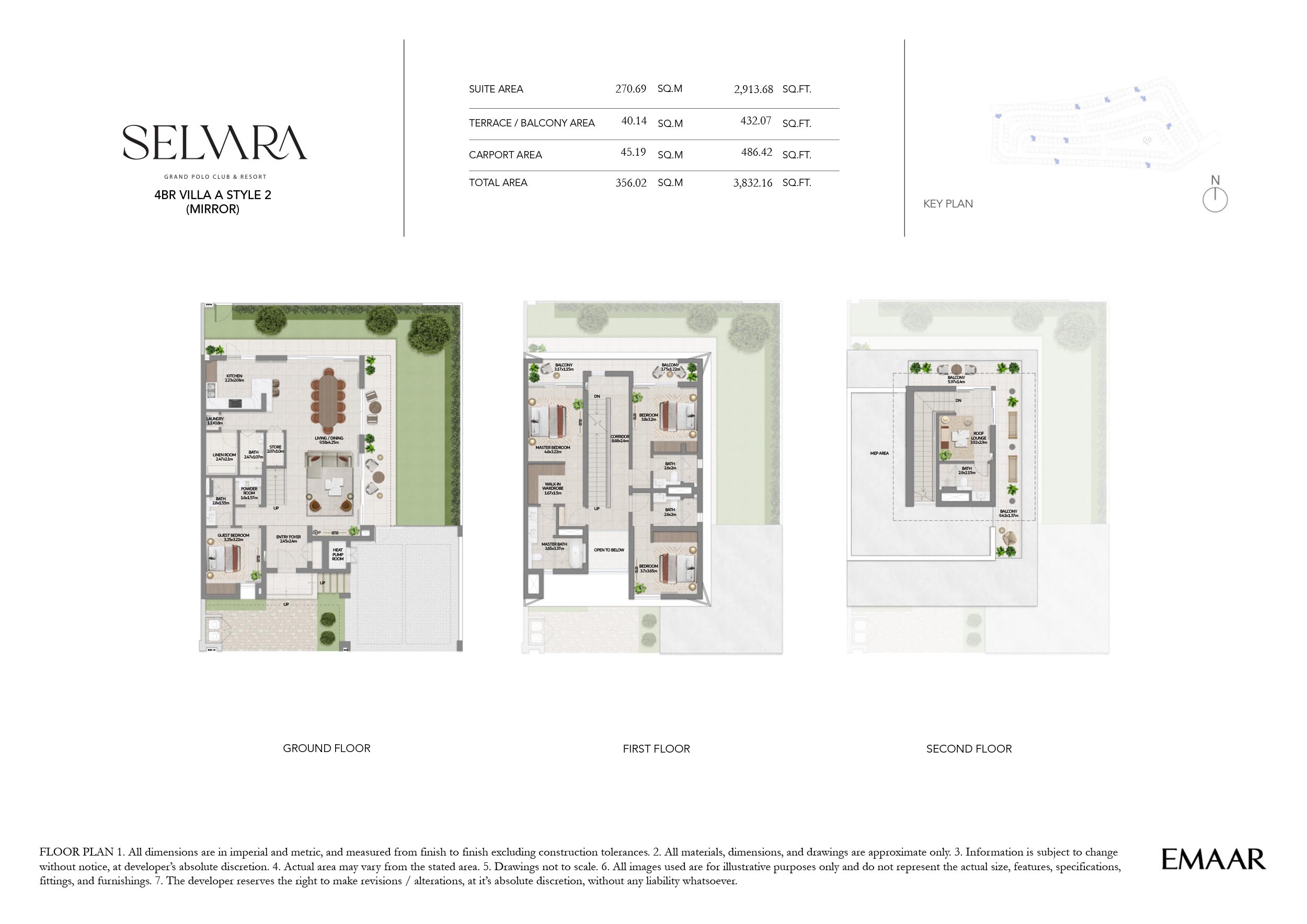 Emaar Selvara features a mix of floor plans lined with premium configured 4-bedroom luxury villas at ease to enjoy the lifestyle. The residences come with high-end interiors and classic design that are impressive as well as attractive enough for anyone. The grand entrance area of these villas laced with private leisure spaces, co-working spaces define the peace of lifestyle that is convenient as well as comfortable. Every plan and layout is optimised with care to offer both functionality and good looks which proves Emaar emphasis on design and quality living aspects. These interiors are made with the art of gracious living with soothing, earthy tones and nature-like textures that reflect nature’s self-expression. Other premium materials of polished stone, timber, and seamless light interplay in quiet interiors, evoking both stillness and grandeur.