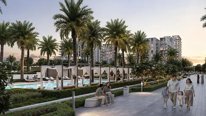 The private amenity landscape of this project is planned with vast gardens, two grand infinity pools with sun deck areas adorned with palm trees and a walkable leisure environment, where you will explore both serene relaxation and inspiring recreation moments. Additional options of communal spaces, a state-of-the-art gym, and a kids’ play zone are other spaces catering to wellness and a shared interactive environment. The additional spaces of paddle & basketball courts, a recreational lawn, a BBQ zone, and an amphitheatre are within this vast address, catering to playful, active, and socially lively experiences of the residents.