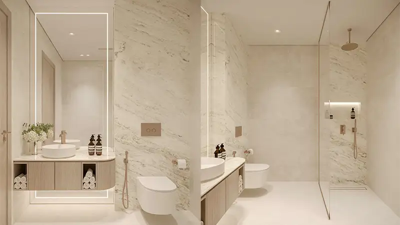 - Fully furnished studios, 1-bedroom, and 2-bedroom apartments crafted with serene interiors and spa-inspired bathrooms.