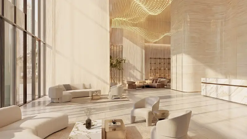 - A grand double-height entrance lobby welcomes residents with refined interiors, premium finishes, and a hotel-inspired arrival experience.