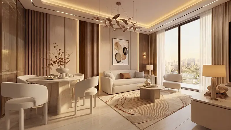 - Fully furnished studios to 3-bedroom apartments, thoughtfully planned, combining contemporary layouts with elegant materials to deliver ready-to-move-in homes.