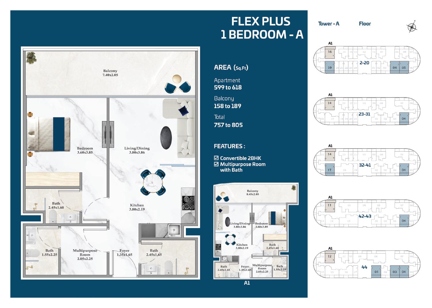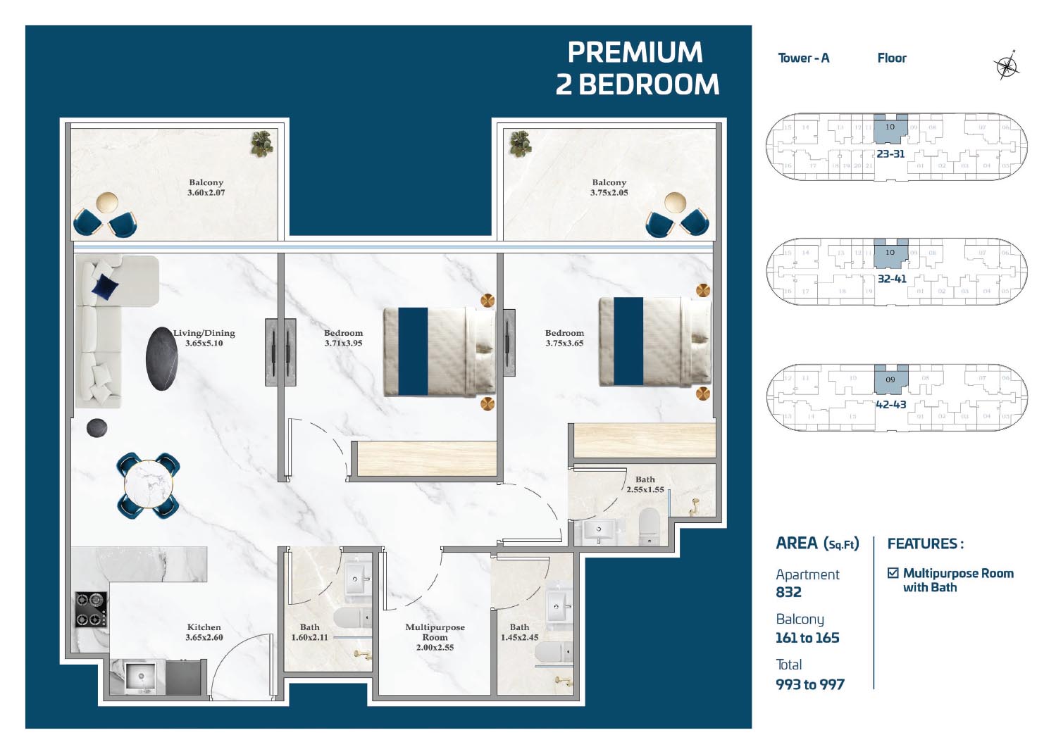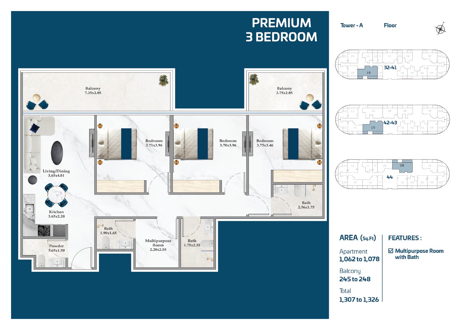 The floor plans of Danube Serenz are detailed such that they offer fully furnished studios, 1, 2 and 3-bedroom apartments at ease. The houses have well-articulated living rooms, open-plan kitchens and the bedrooms are well proportioned and fit the new age lifestyles. Large balconies make their living area to be stretched outside, which would provide a continuous perspective and better natural ventilation. The designs focus on effective movement, whereby, privacy is accorded in bedrooms where there is free flow in the living and dining areas. Fully furnished interiors have the immediate effects of adding value making each an all-rounder, with both the end-users and investors who require ready to occupy houses.