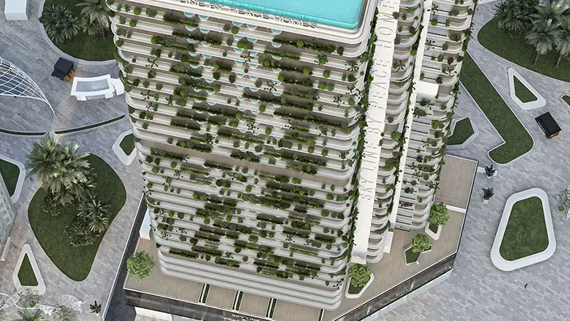 Sky Line at Dubailand is the newest residential address, a modern distinguished 31-storey high-rise tower by Peace Homes Development with studios, 1 and 2-bedroom apartments. This is a unique residential masterpiece in the ever changing landscape of Dubai, which is full of innovation, architectural geniuses which are meant to revolutionize the contemporary city living. It is in the spectacular Dubai Land Residence Complex (DLRC) where the eye cannot fail to notice the perfect combination of the modern architecture, cosiness of life as well as prospective investments. The façade emerges as an innovative and well-developed tower which merges residential, the office and shopping areas into one unified place to stay. The unusual architecture of the building also delineates the use of cascading green terraces, huge glass windows and the use of graceful vertical lines which make the building look aesthetically attractive in the skyline.