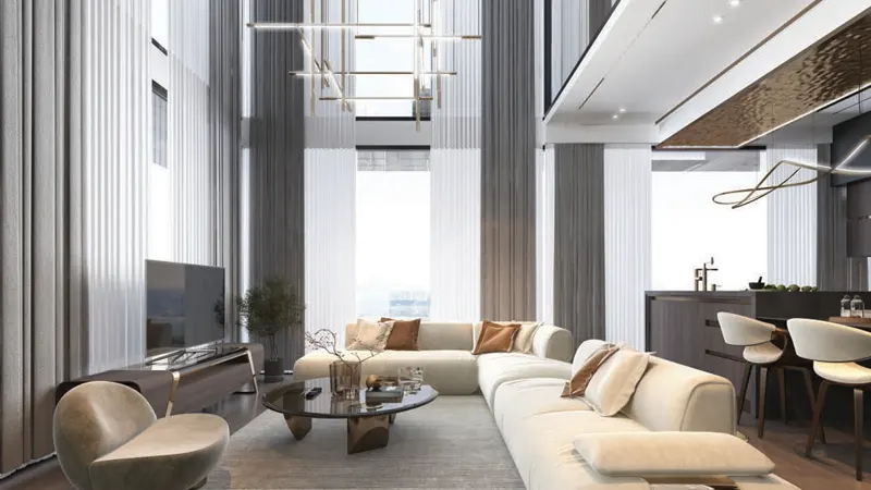 Find the inspiring residences at the master plan development of Sky Living by Peace Homes in the blooming district of JVC. Embrace the modern pace of the metropolitan city where open landscapes, community parks and many leisure centres of an urban community are strategically positioned. This sophisticated and contemporary gem encapsulates a ground & 4 podiums with an abundance of spaces and facilities, while 19 residential floors combine a private Jacuzzi in each spacious and cutting-edge unit.