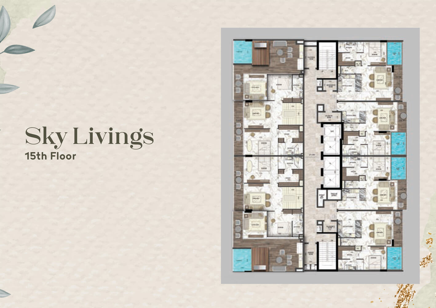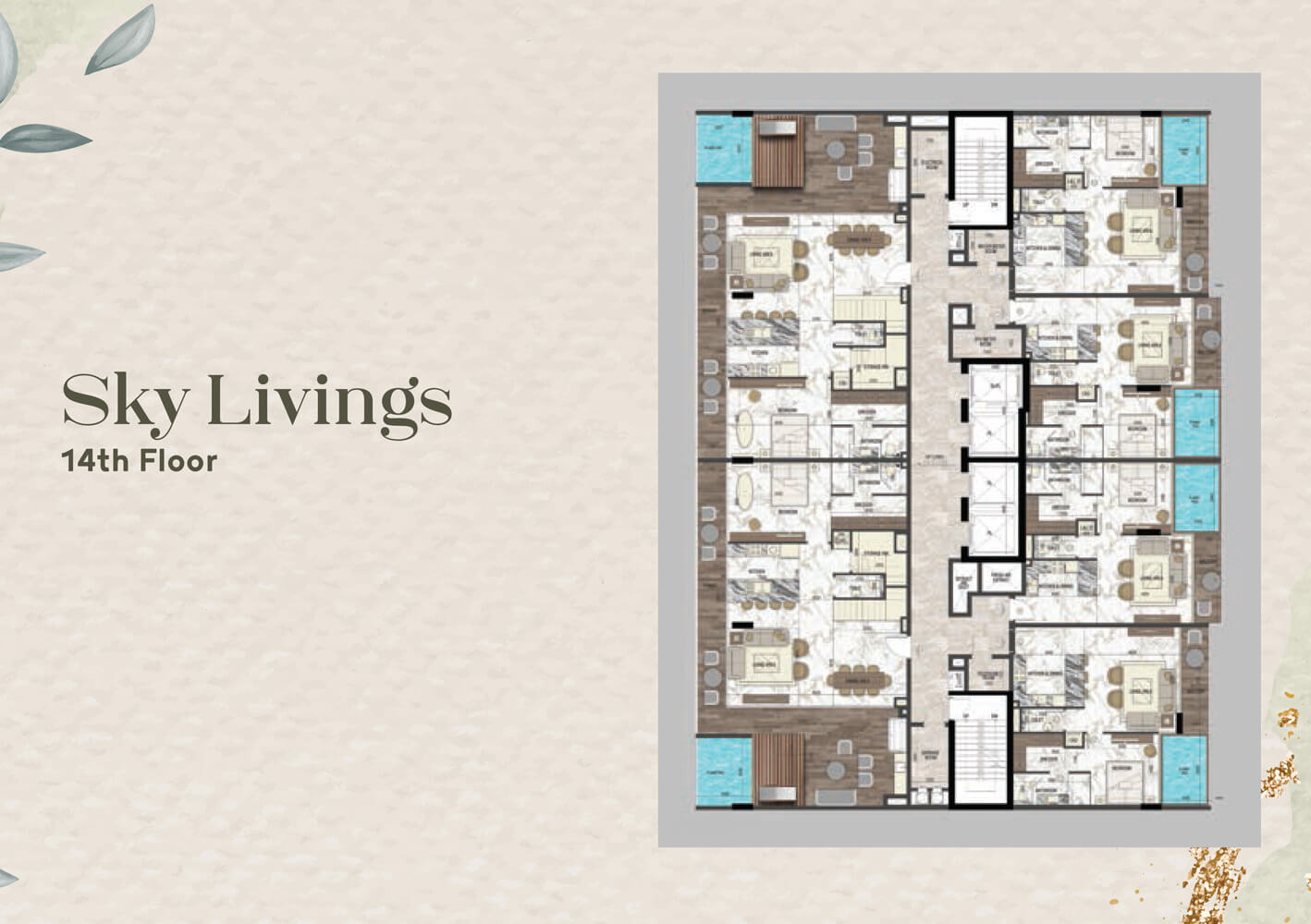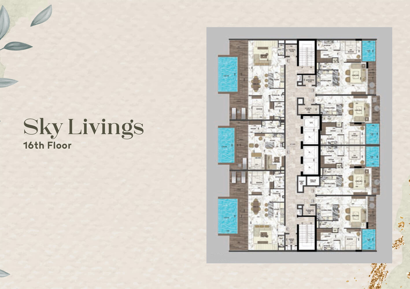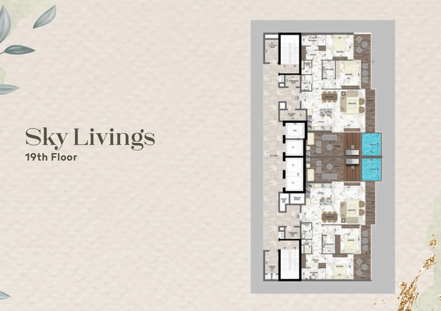 Sky Living introduces a spacious and elegantly designed floor plan of studios, 1 & 2 bedroom apartments and 2 & 3-bedroom duplexes with private pools. There is a diverse range of semi-furnished smart homes with a private Jacuzzi in each.