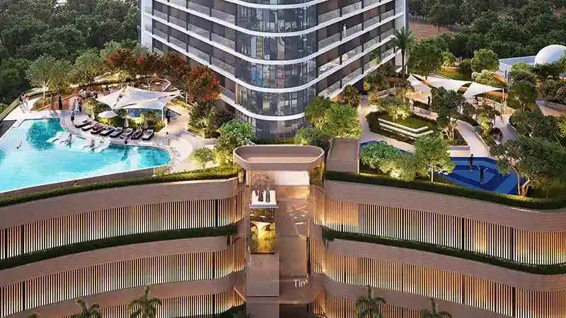- A multi-layered amenity network featuring infinity pools, kids’ pools, water fitness areas and landscaped leisure terraces across connected podiums.