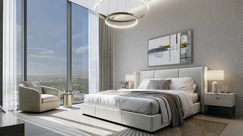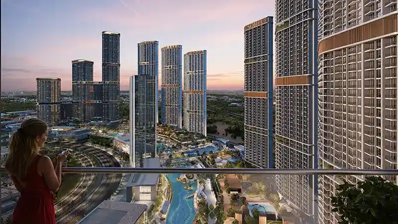 - Positioned in Sobha Hartland 2 in Dubai, offering a serene waterfront lifestyle with direct vistas toward Downtown Dubai and Ras Al Khor Sanctuary.