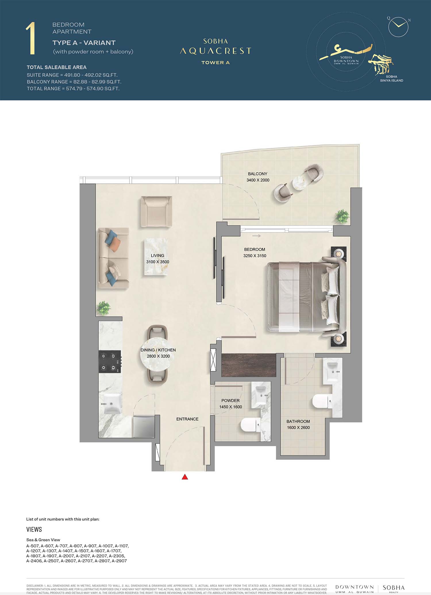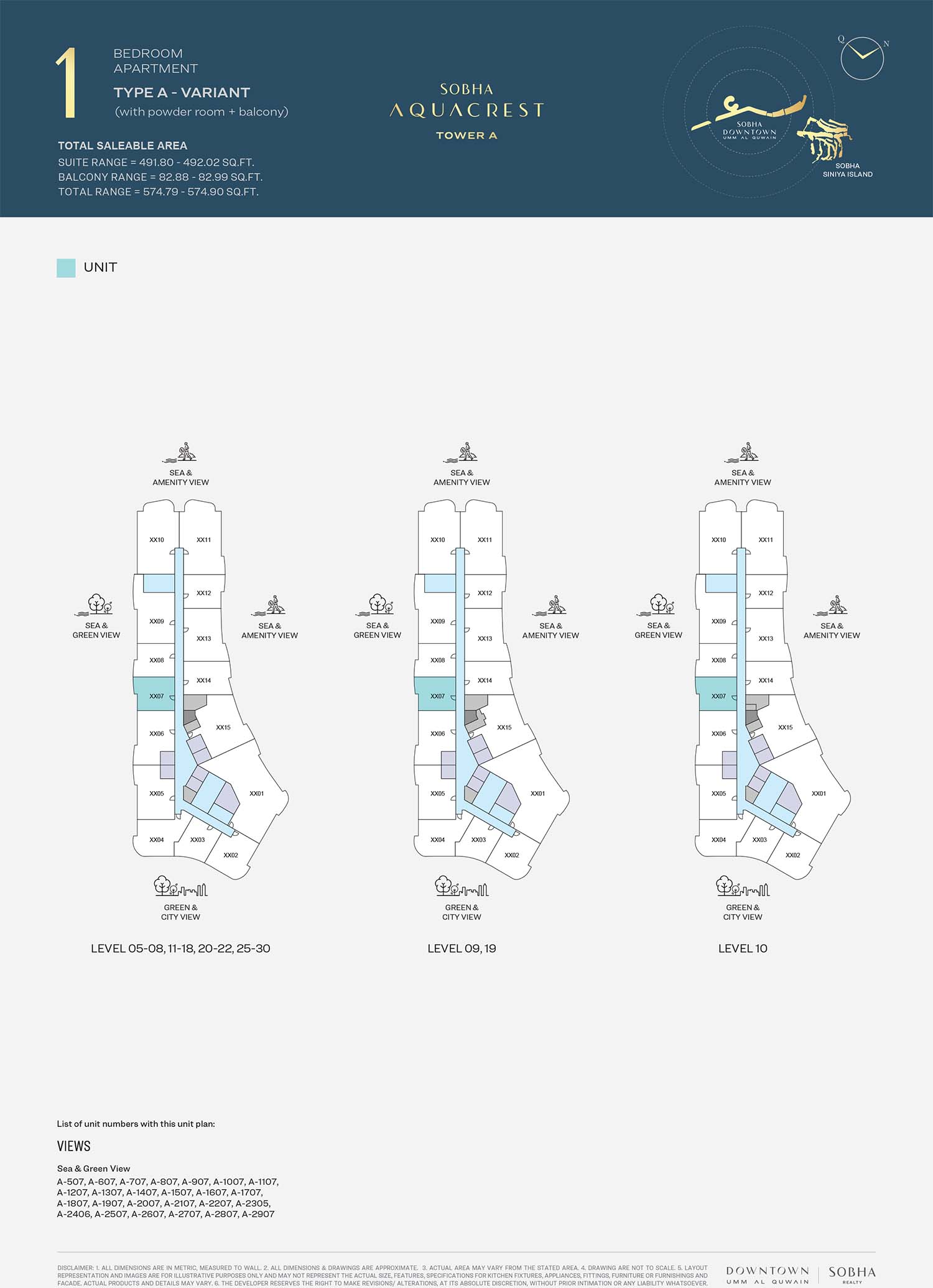 | Tower A | 1 Bedroom | Level 05-30 (Type A Variant) | 574.90 Sq Ft | Click Here |