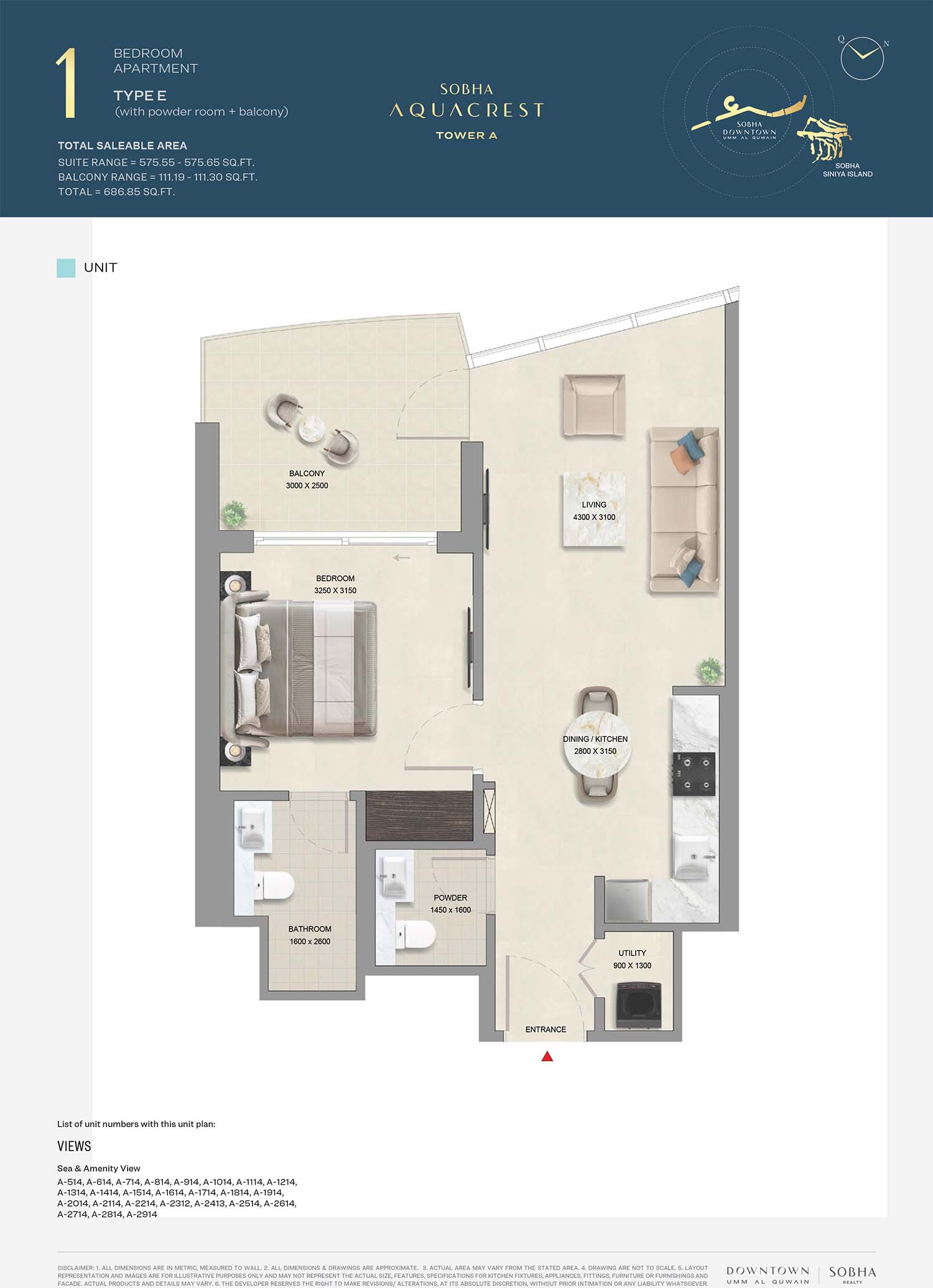 | Tower A | 1 Bedroom | Level 05-30 (Type E) | 686.85 Sq Ft | Click Here |