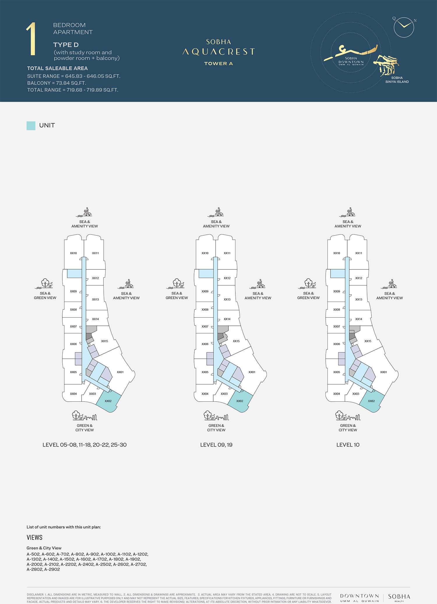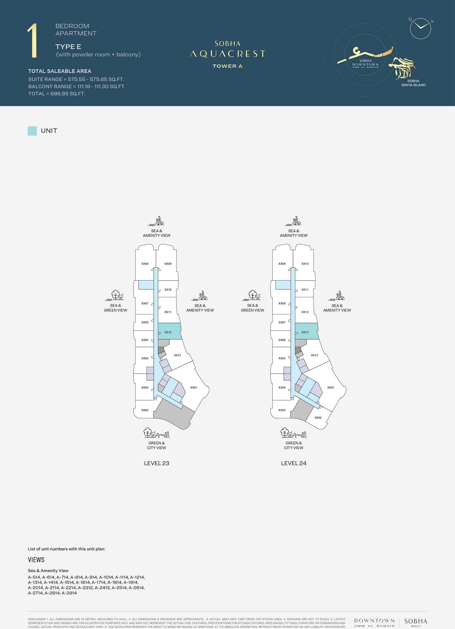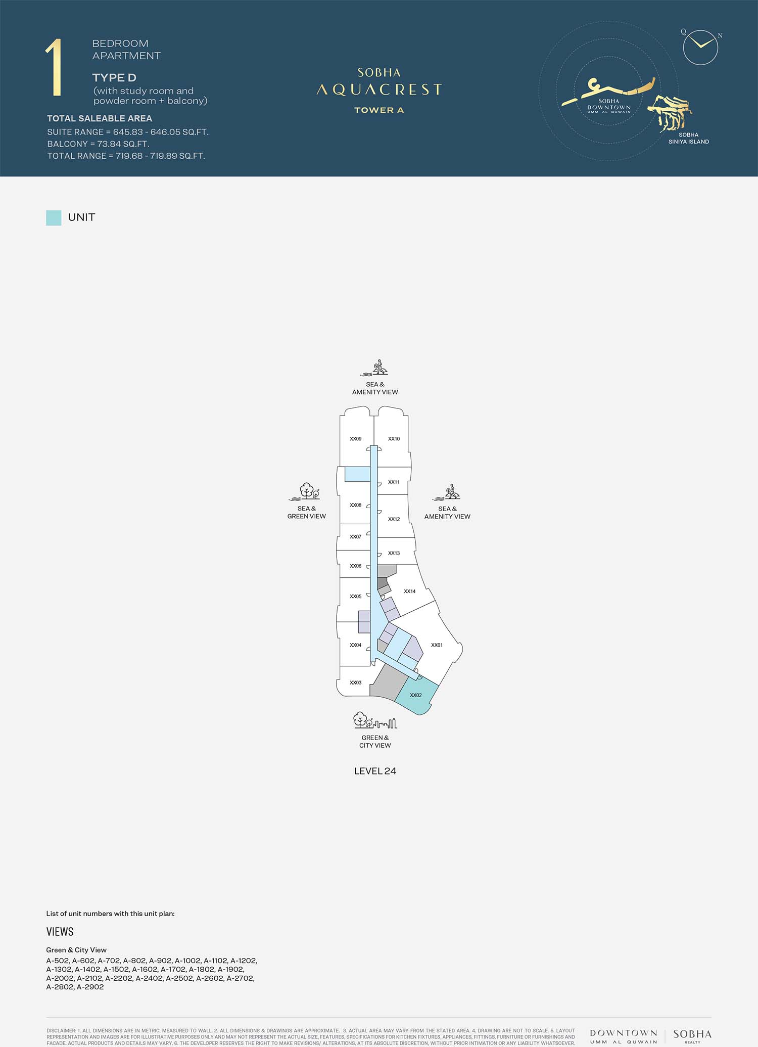 | Tower A | 1 Bedroom | Level 24 (Type D) | 719.89 Sq Ft | Click Here |