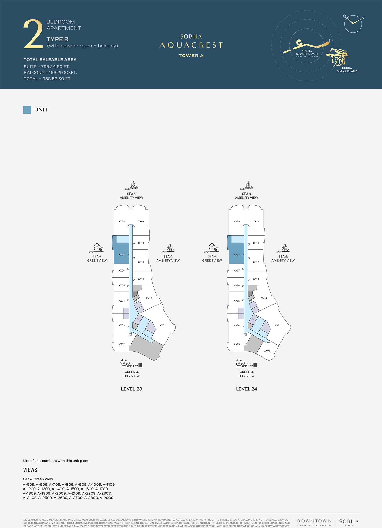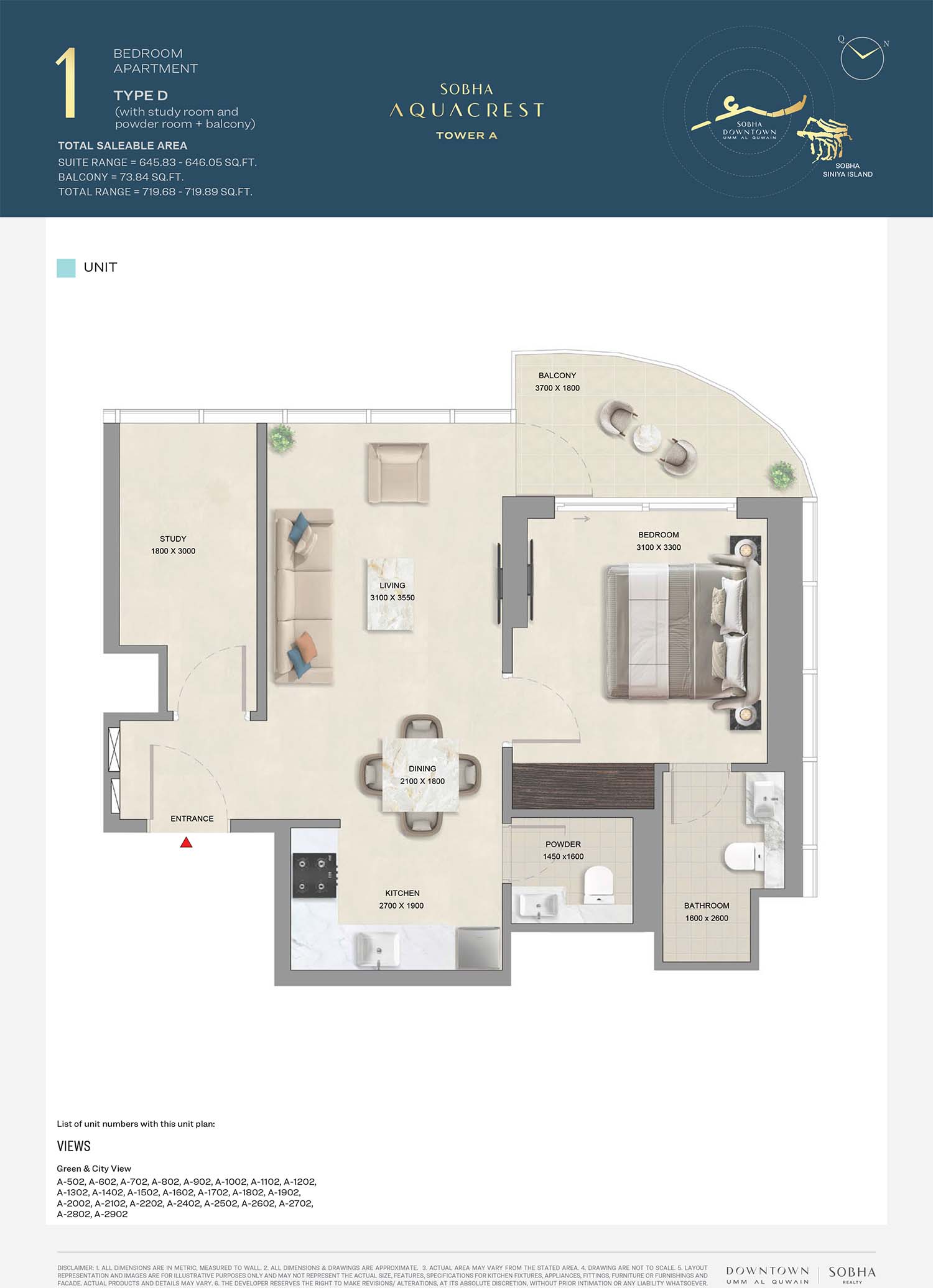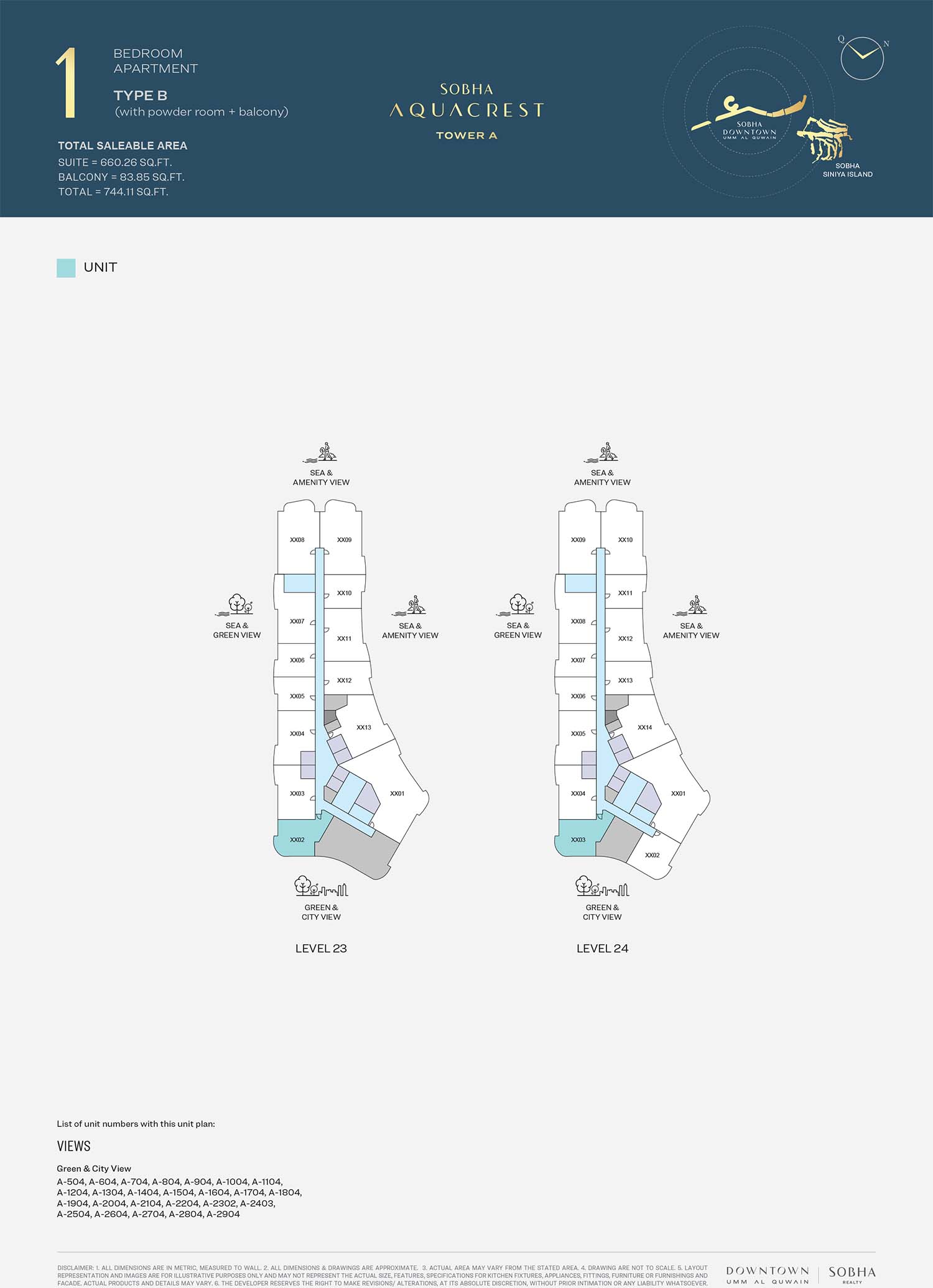 | Tower A | 1 Bedroom | Level 24 (Type D) | 719.89 Sq Ft | Click Here |