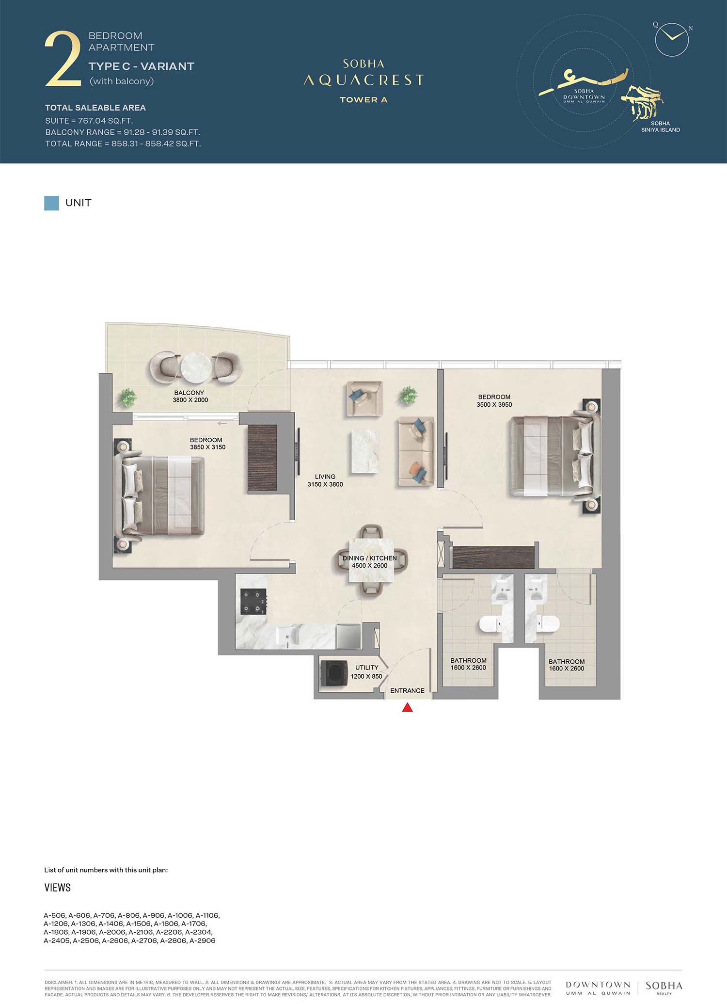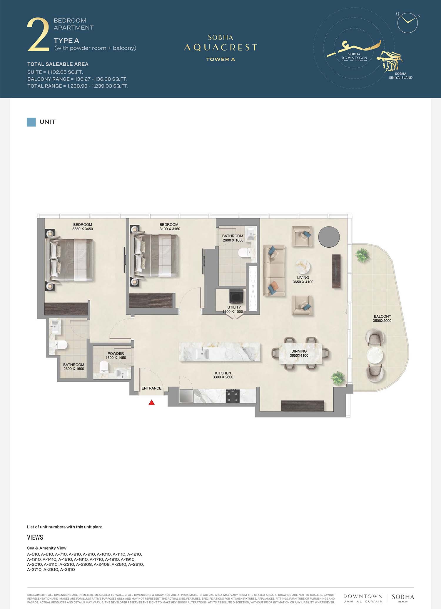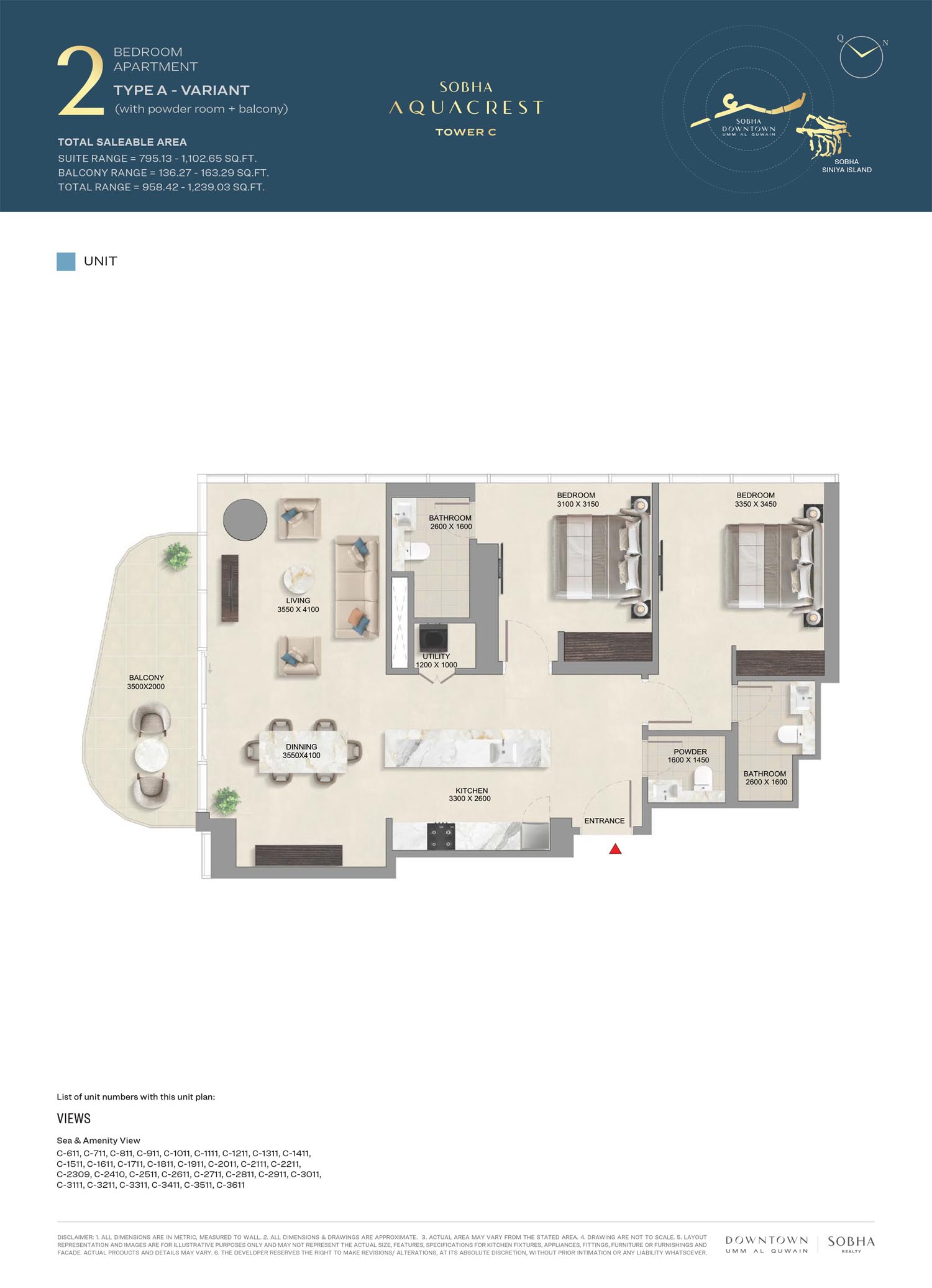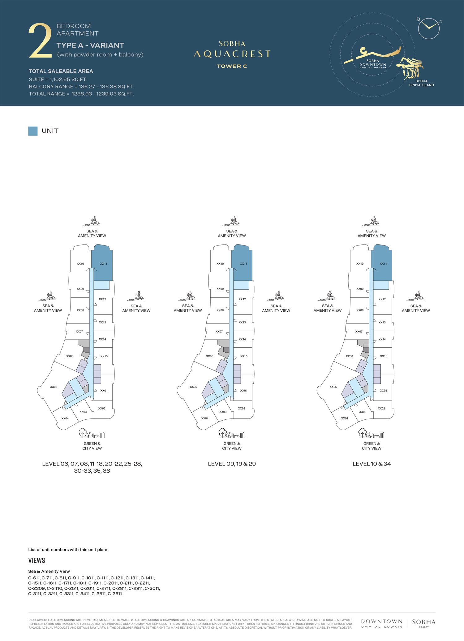 | Tower C | 2 Bedrooms | Level 02-36 (Type A Variant) | 1239.03 Sq Ft | Click Here |
