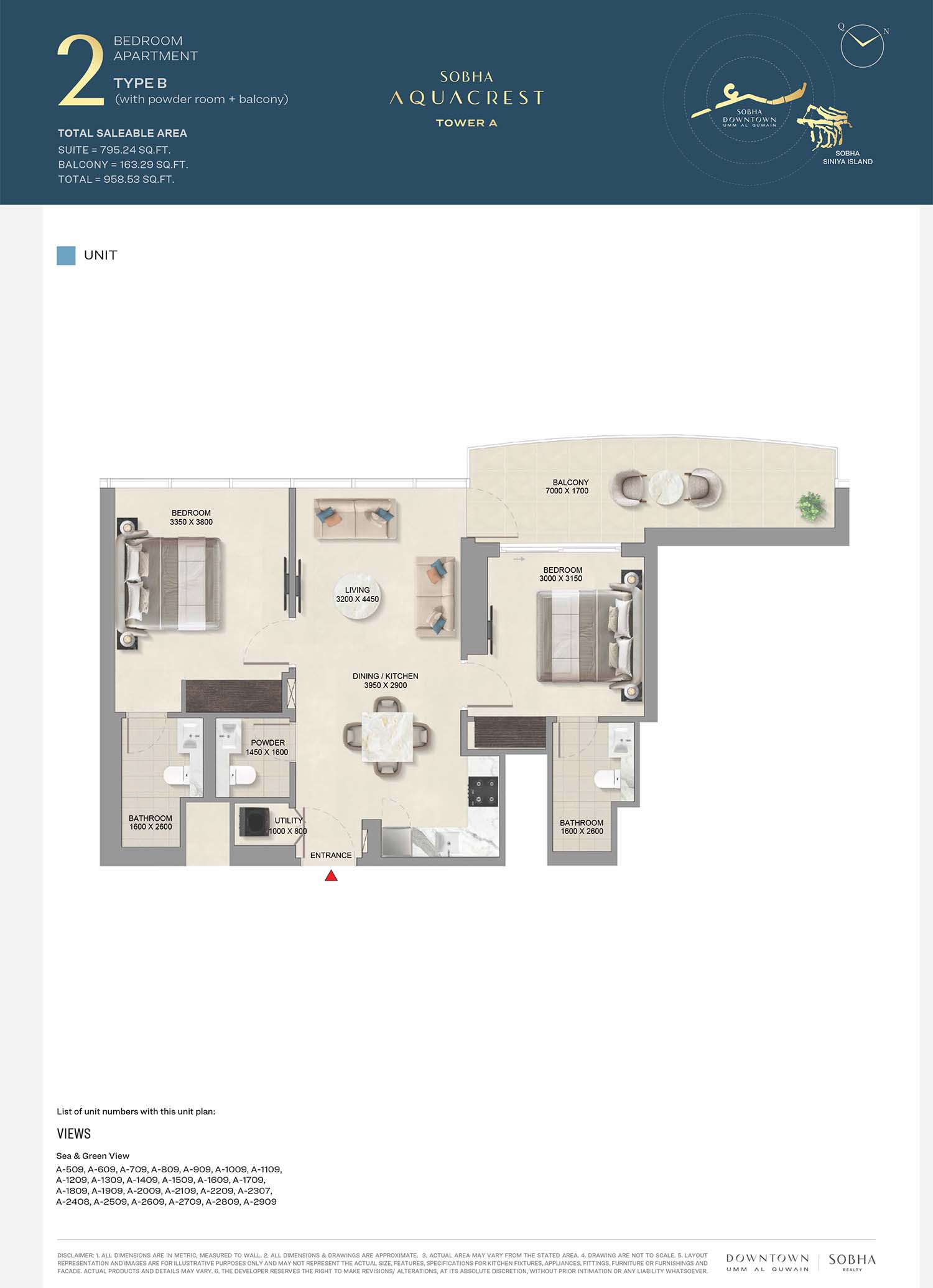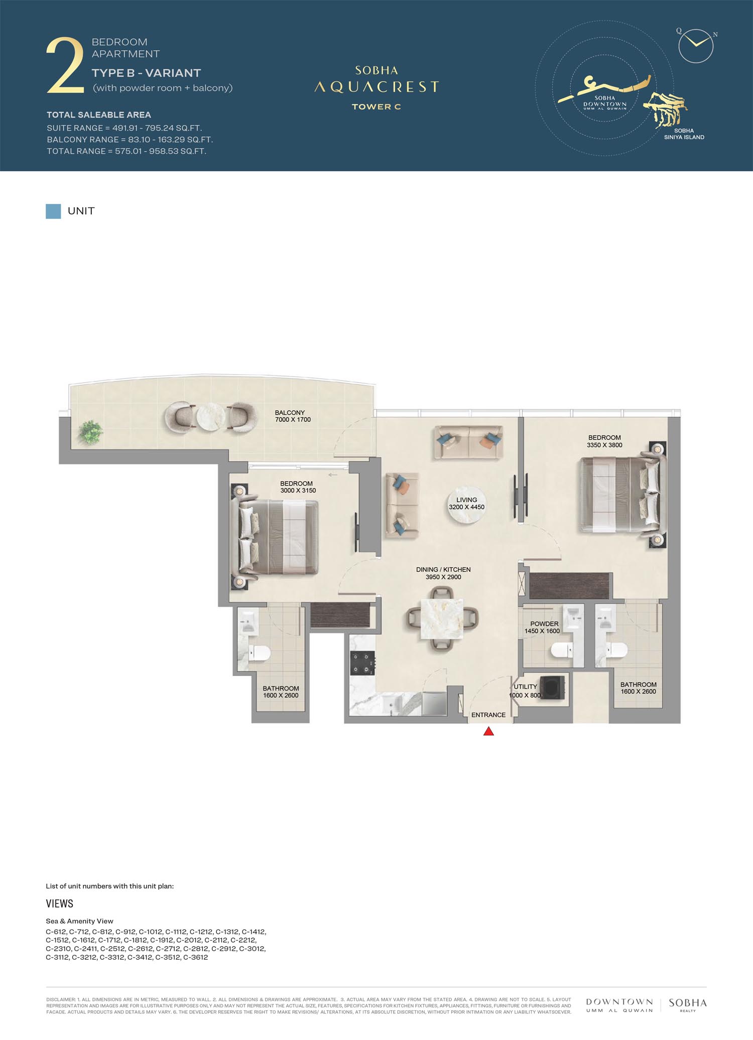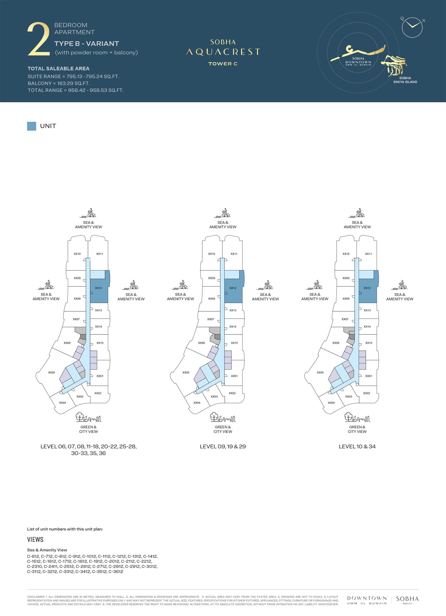 | Tower C | 2 Bedrooms | Level 02-36 (Type B Variant) | 958.53 Sq Ft | Click Here |