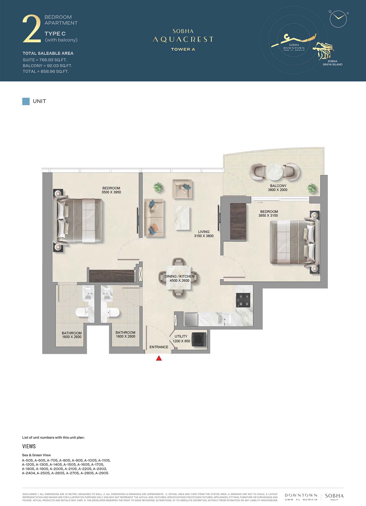 | Tower A | 2 Bedrooms | Level 05-30 (Type C) | 858.96 Sq Ft | Click Here |