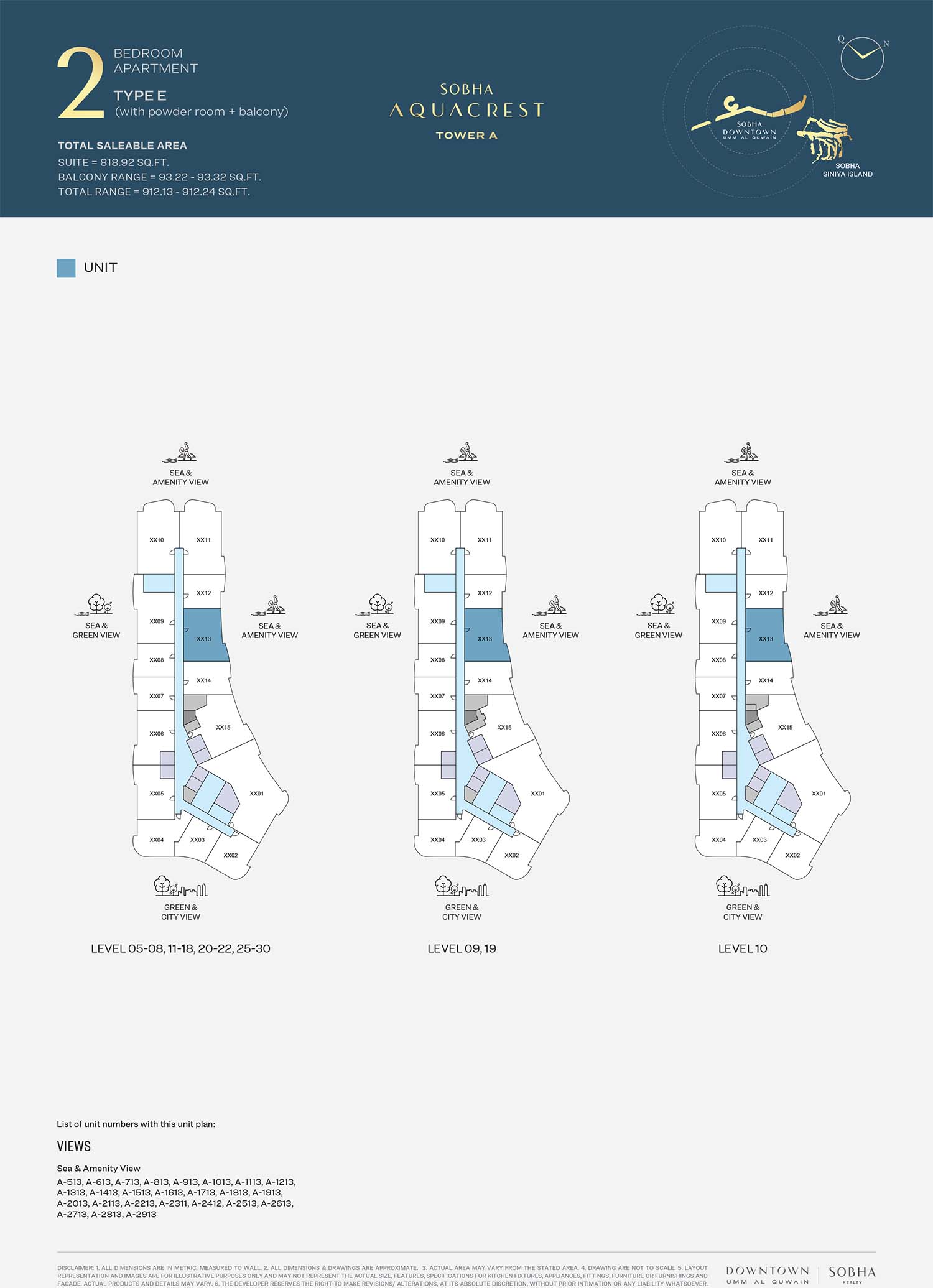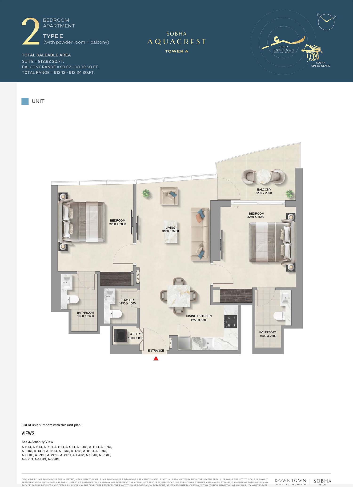 | Tower A | 2 Bedrooms | Level 05-30 (Type E) | 912.24 Sq Ft | Click Here |