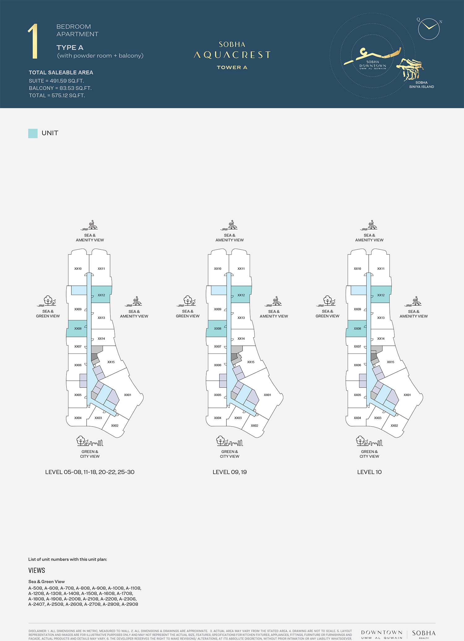 | Tower A | 1 Bedroom | Level 05-30 (Type A) | 575.12 Sq Ft | Click Here |