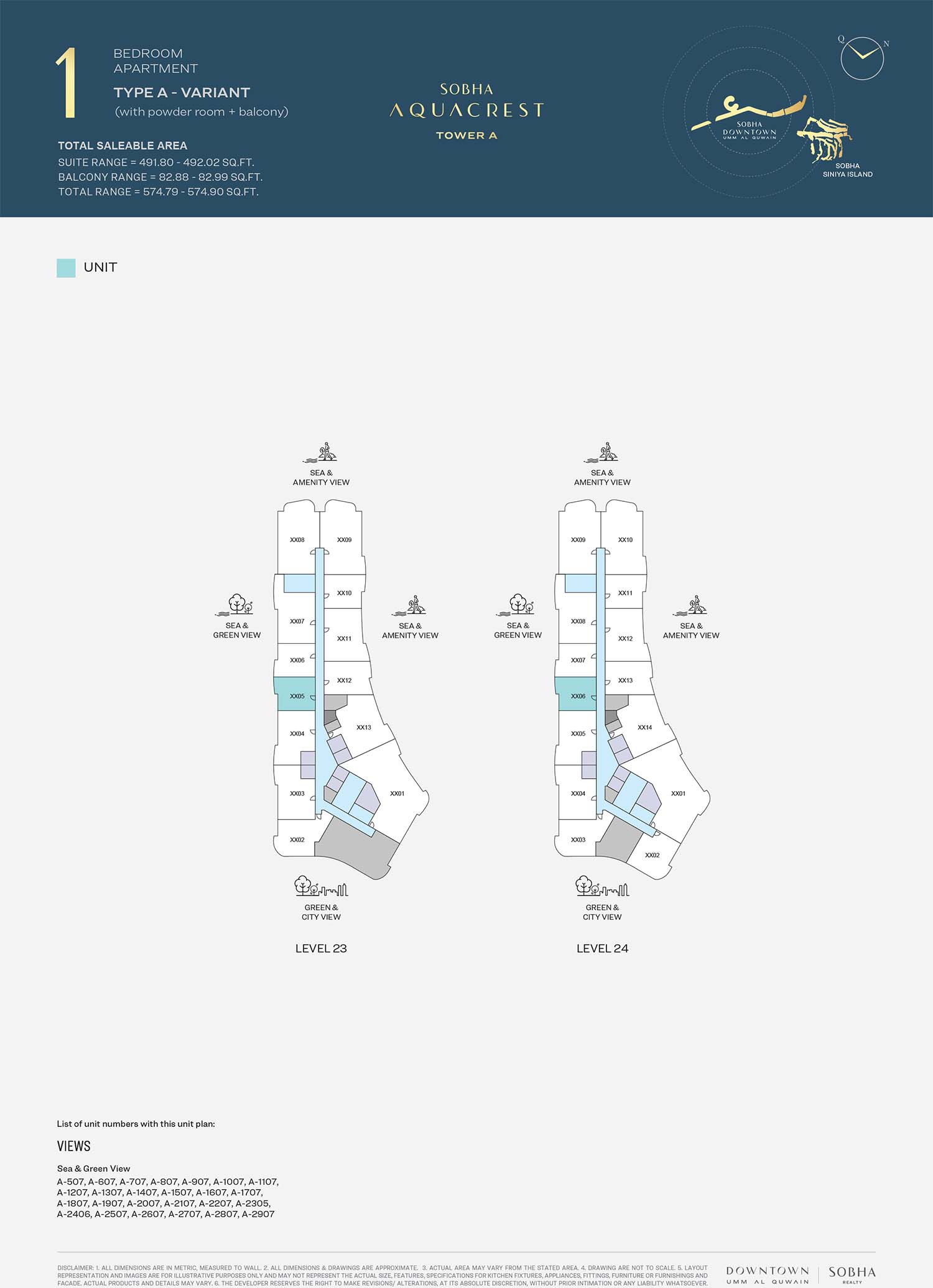 | Tower A | 1 Bedroom | Level 23 & 24 (Type A Variant) | 574.90 Sq Ft | Click Here |