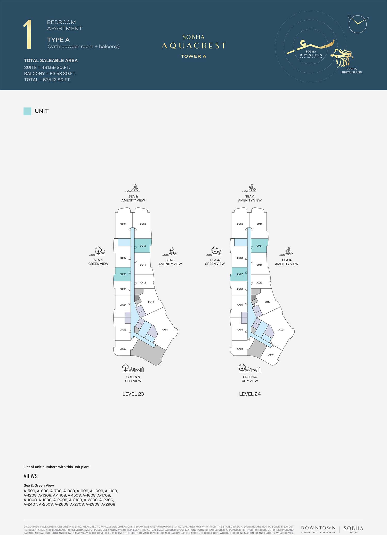 | Tower A | 1 Bedroom | Level 23 & 24 (Type A) | 575.12 Sq Ft | Click Here |