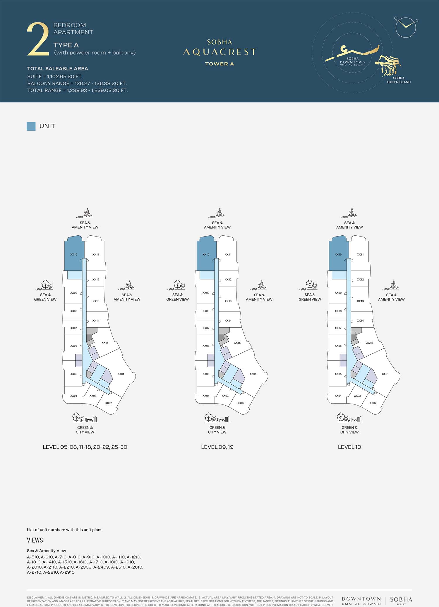 | Tower A | 2 Bedrooms | Level 05-30 (Type A) | 1239.03 Sq Ft | Click Here |