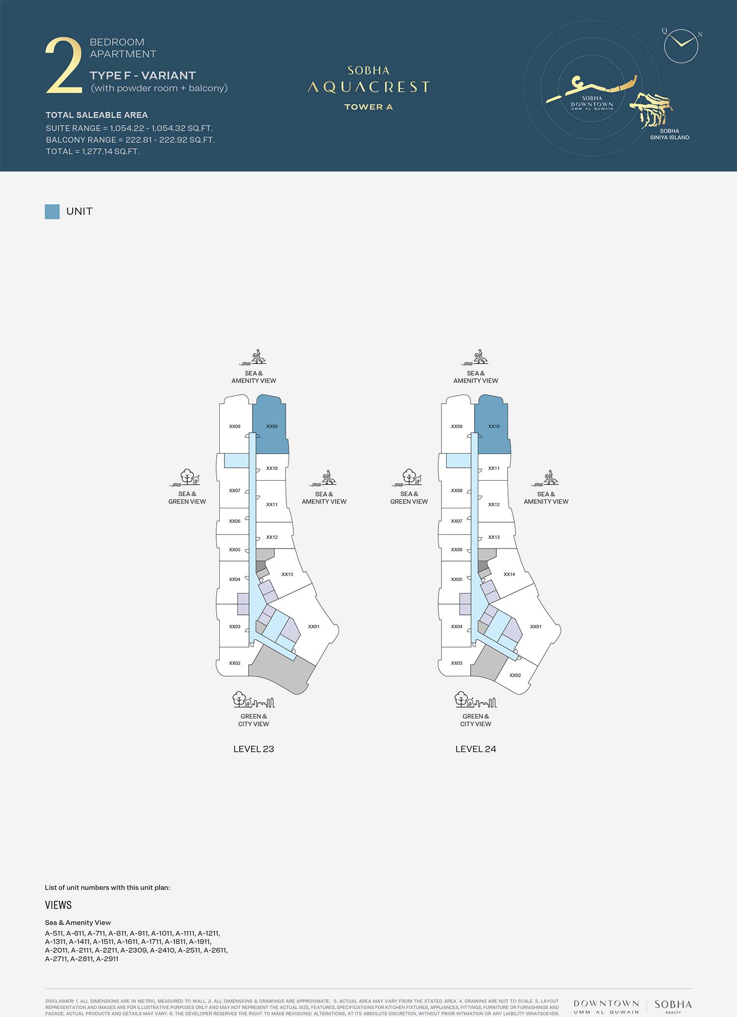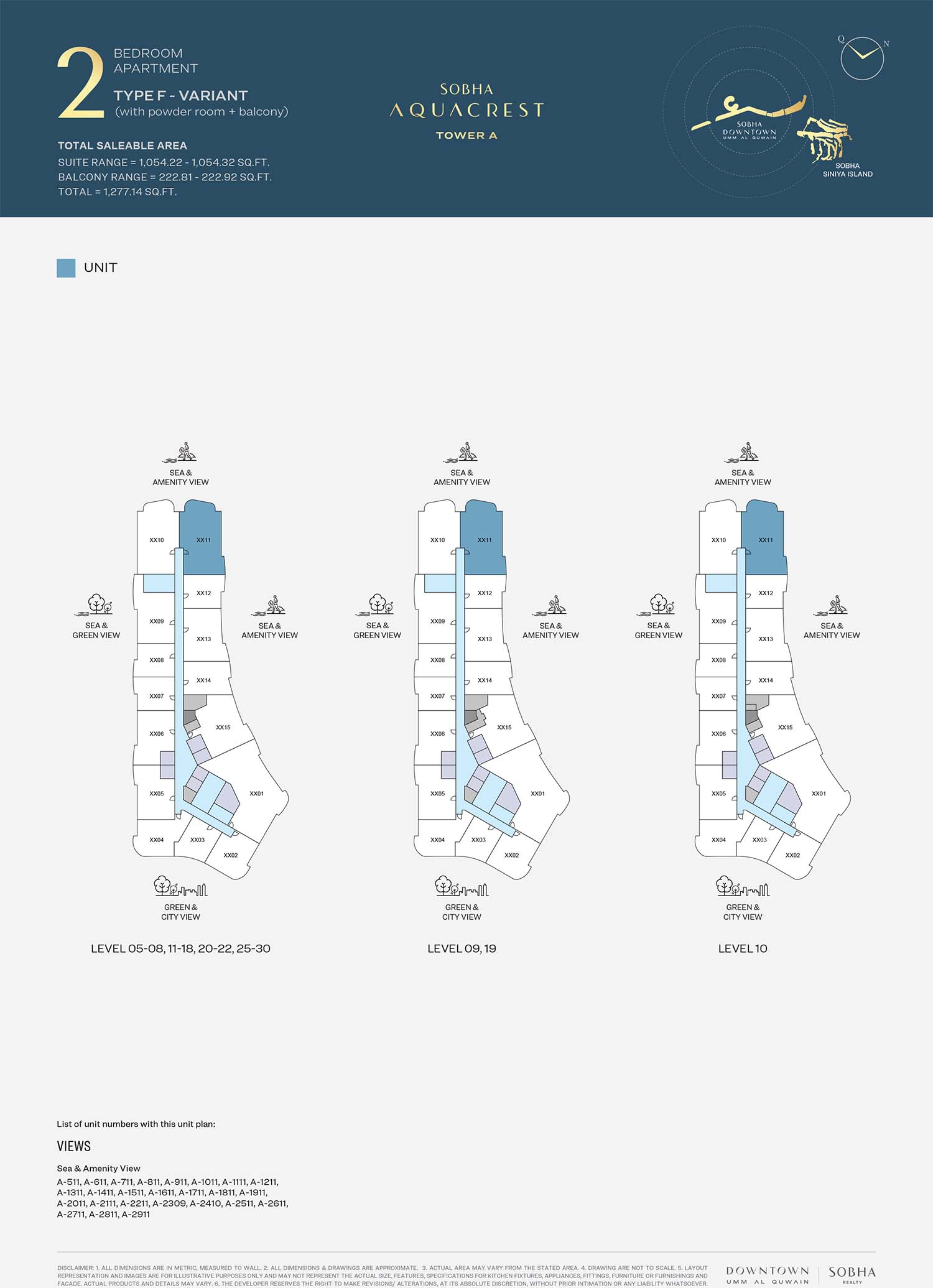 | Tower A | 2 Bedrooms | Level 05-30 (Type F Variant) | 1277.14 Sq Ft | Click Here |
