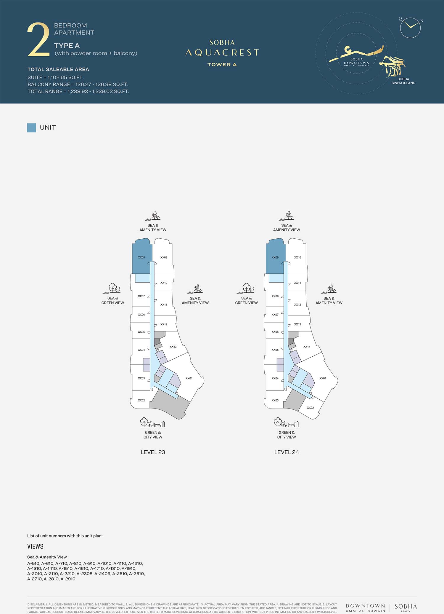 | Tower A | 2 Bedrooms | Level 23 & 24 (Type A) | 1239.03 Sq Ft | Click Here |