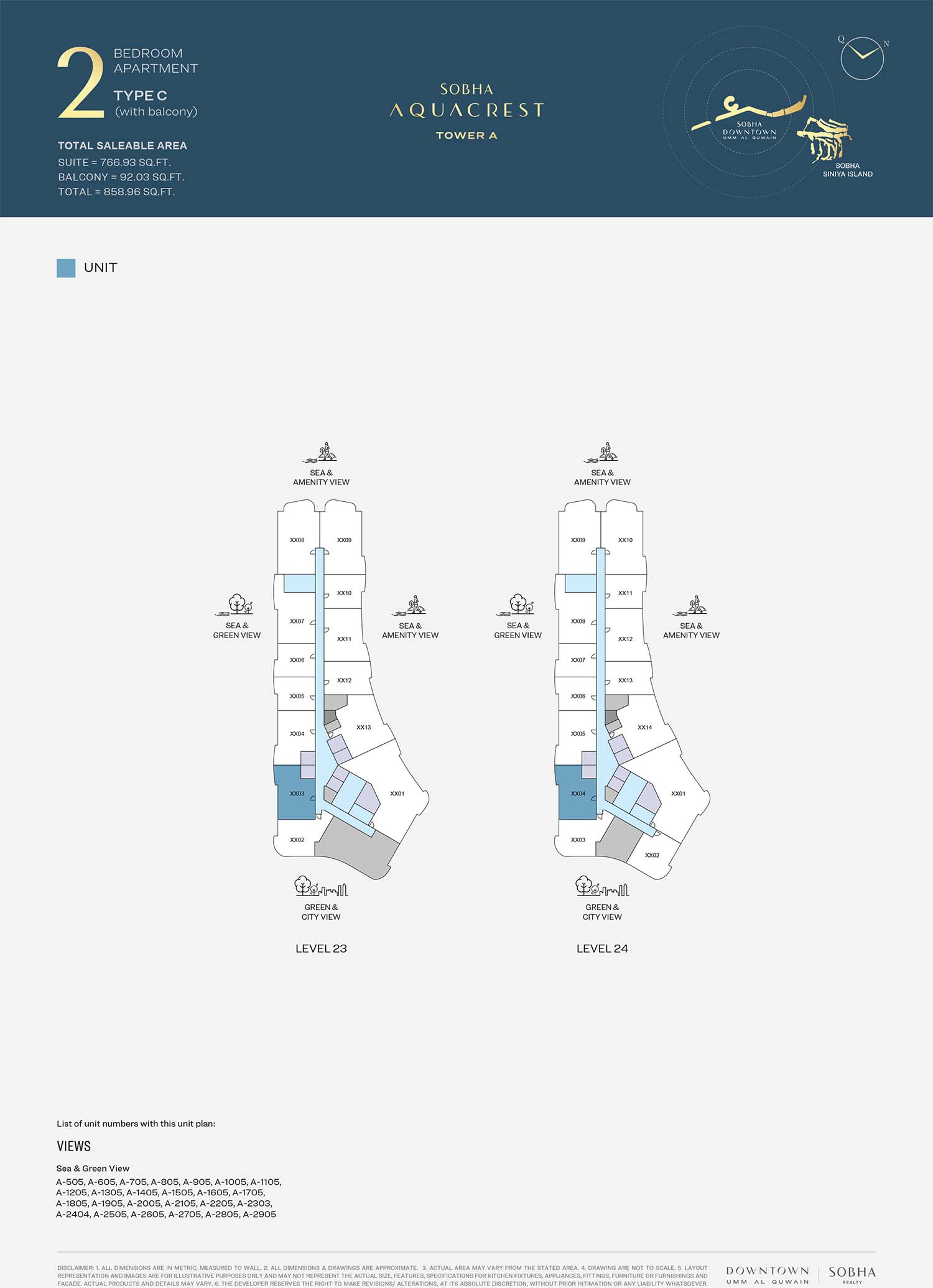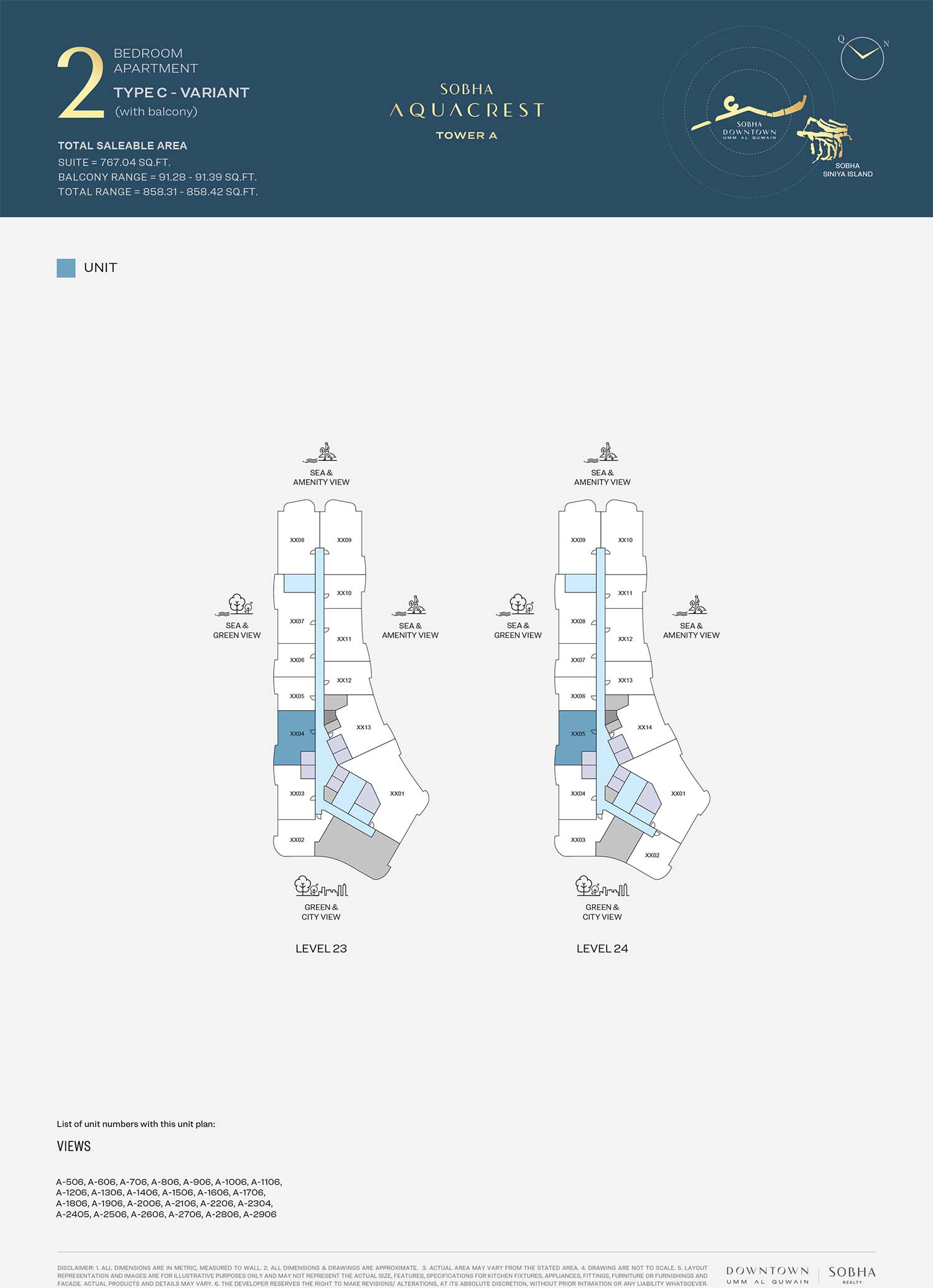 | Tower A | 2 Bedrooms | Level 23 & 24 (Type C Variant) | 858.42 Sq Ft | Click Here |