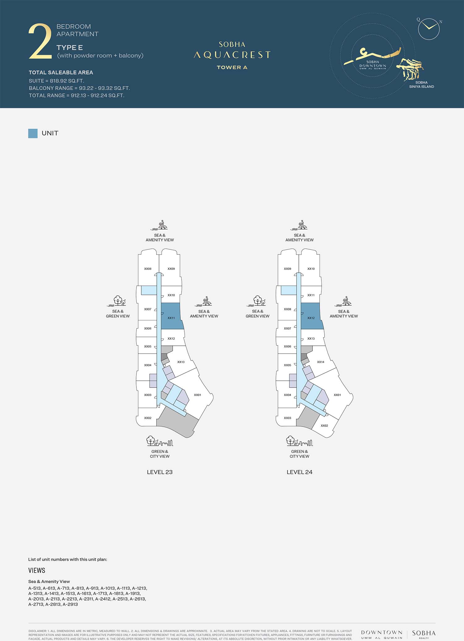| Tower A | 2 Bedrooms | Level 23 & 24 (Type E) | 912.24 Sq Ft | Click Here |